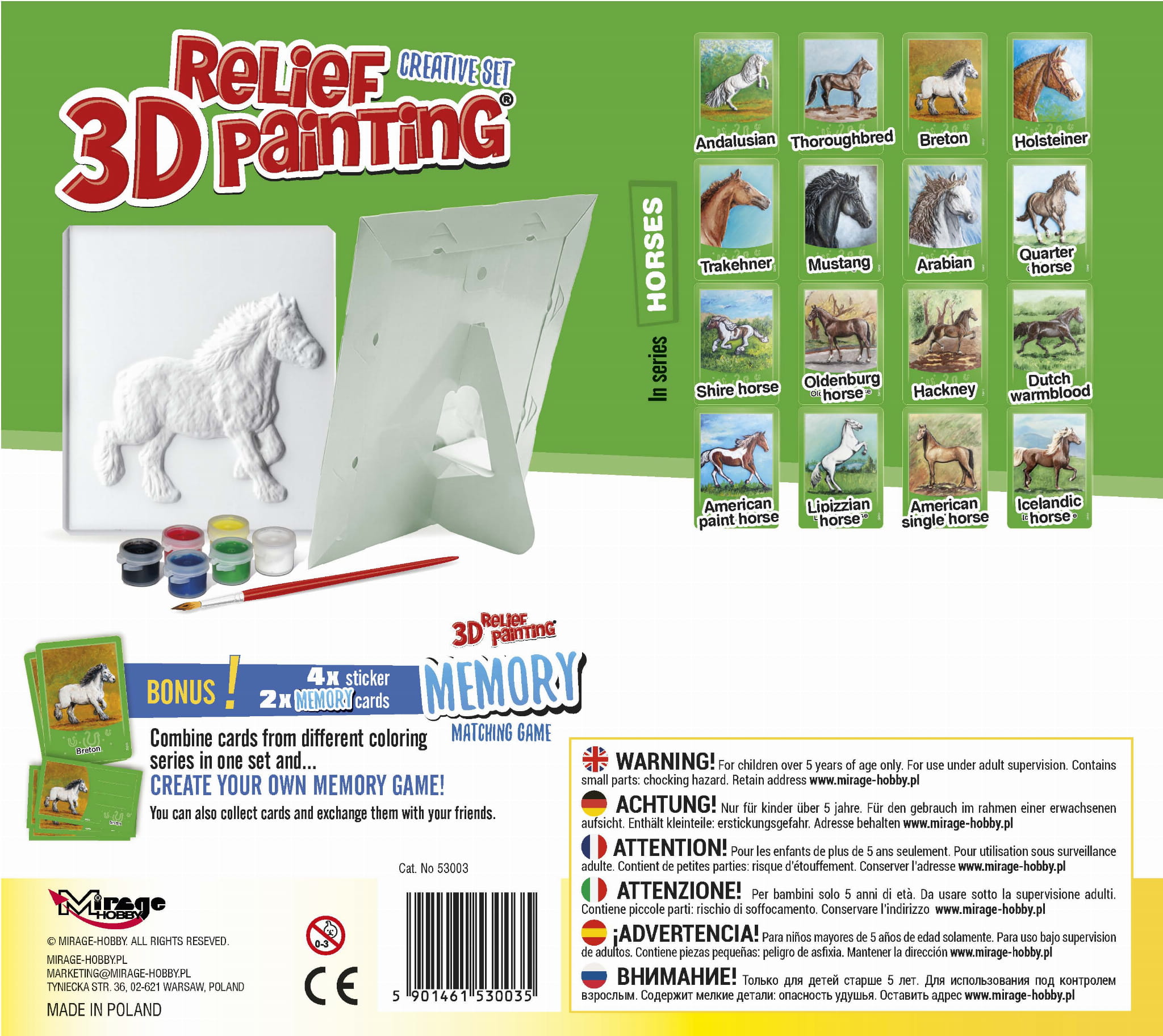 The set includes also: 4 x stickers, 2 x memory cards (Combine cards from different boxes in one set and create your own Memory Game)