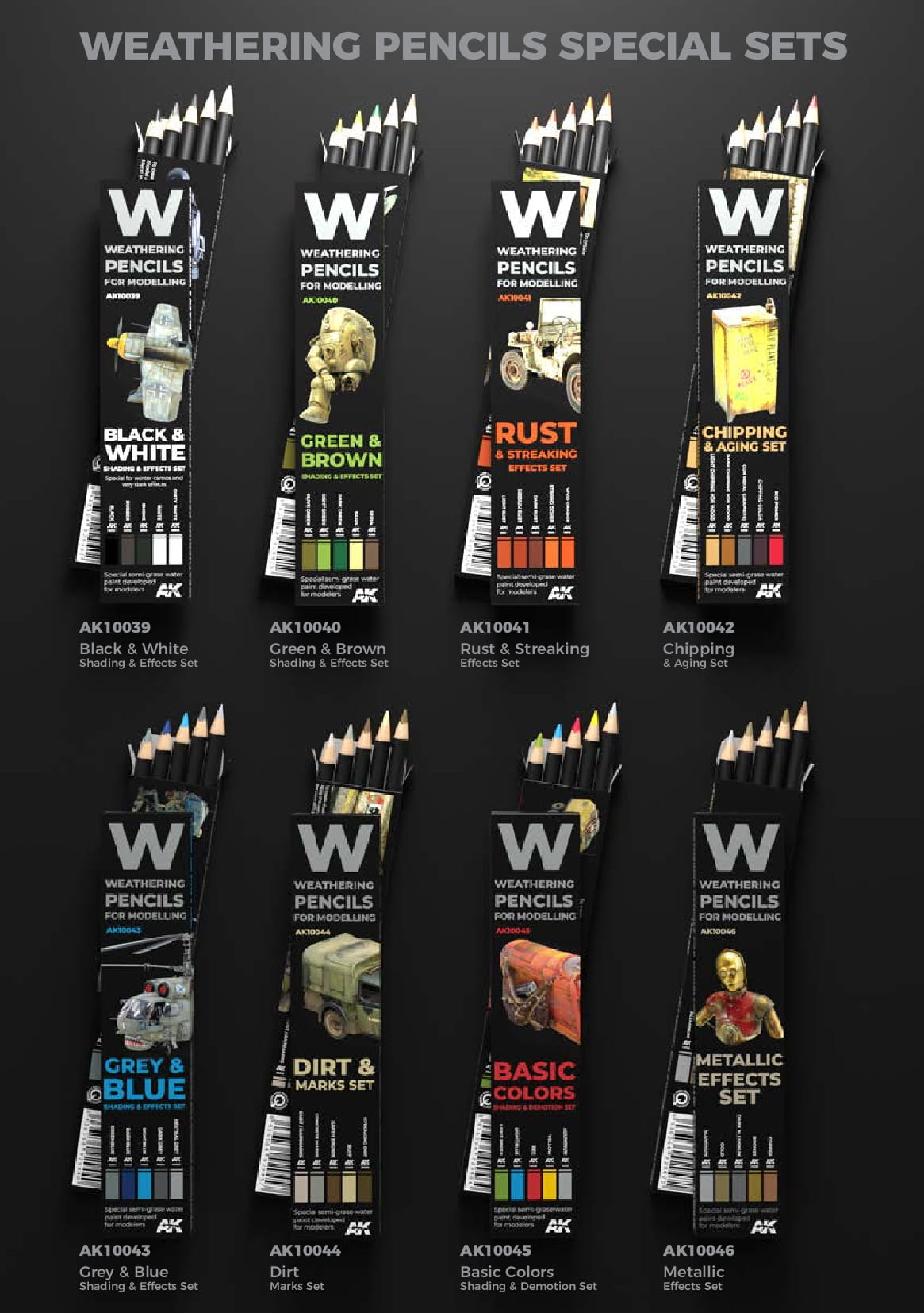 AK 10044 Weathering Pencils SET - DIRT & Marks set
