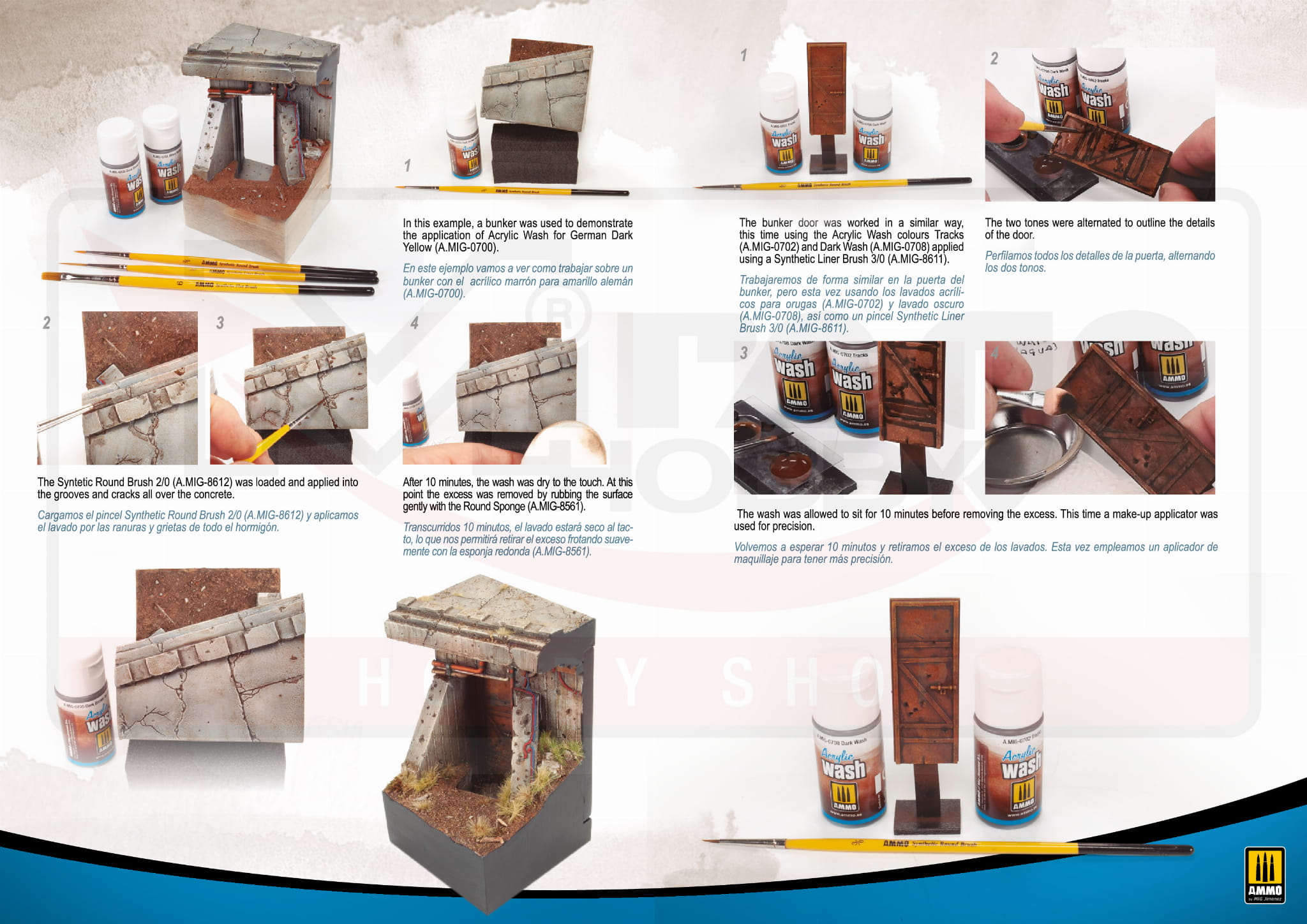 Washe AMMO by Mig Jimenez opracowano w dwóch różnych formułach, zarówno - emaliowanych, jak i akrylowych. Każdy typ charakteryzuje się inną jakością, aby dostosować się do różnorodnych potrzeb naszych modeli i preferencji każdego modelarza. Obydwa dają doskonałe rezultaty i są bardzo łatwe w aplikacji.