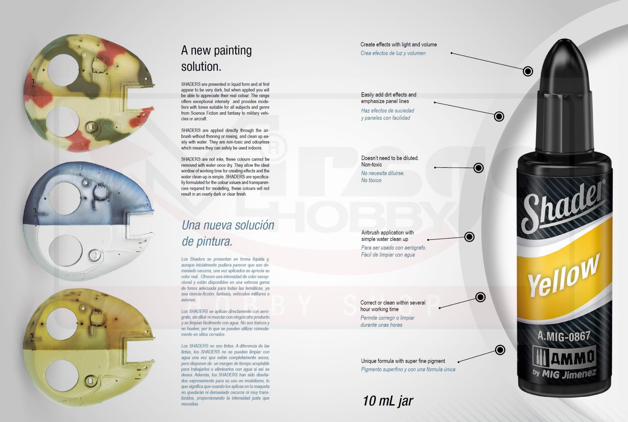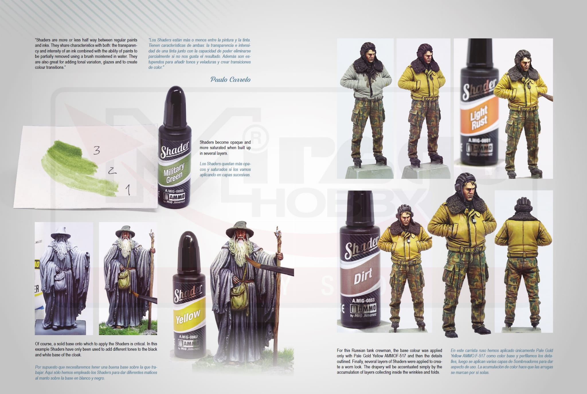 Seria Ammo SHADERS nada Twojemu modelowi dynamiczne i interesujące wykończenie w ciągu kilku minut, dzięki czemu te kolory są idealne dla modelarzy, którzy dopiero rozpoczynają swoją przygodę z hobby. Wszystkie nowe cechy pozwalają modelarzom tworzyć efekty, które do tej pory można było osiągnąć tylko przy użyciu bardziej złożonych technik, takich jak glazury, washe czy filtry.
