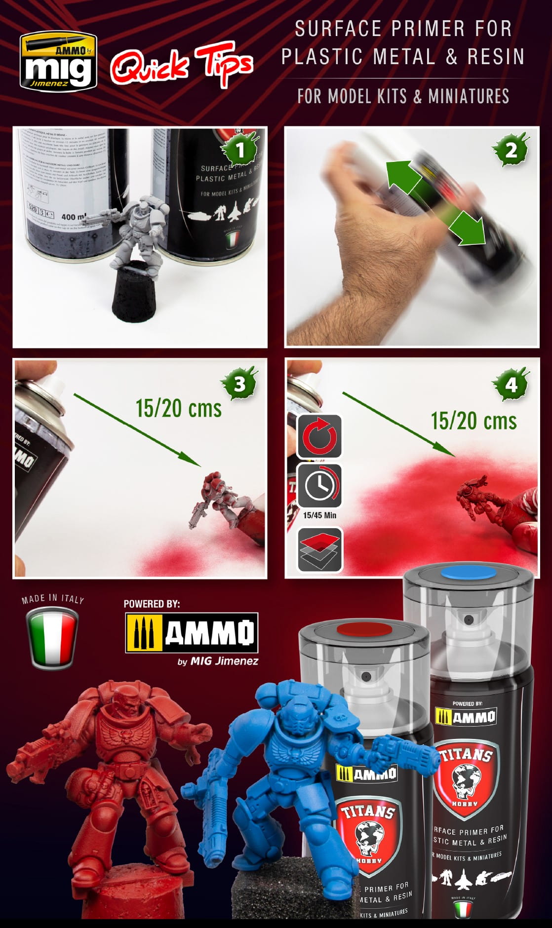 Każdy rodzaj farby, w tym akryle, lakiery i emalie, można nakładać pędzlem i aerografem na ten podkład. Dzięki doskonałemu wykończeniu i różnorodności dostępnych odcieni, podkład ten może być również stosowany jako kolor bazowy.