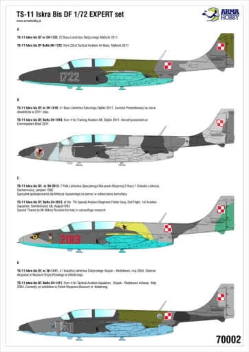 - TS-11 Iskra bis DF, nr 3H-2013, 7 Pułk Lotnictwa Specjalnego Marynarki Wojennej 2 Klucz 1 Eskadra Lotnicza, Siemierowice, sierpień 1993. Specjalne podziękowania dla Miłosza Rusieckiego za pomoc w odtworzeniu kamuflażu
