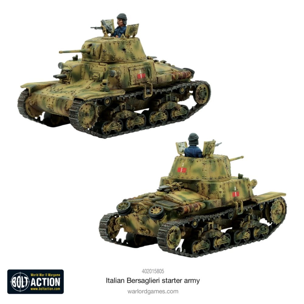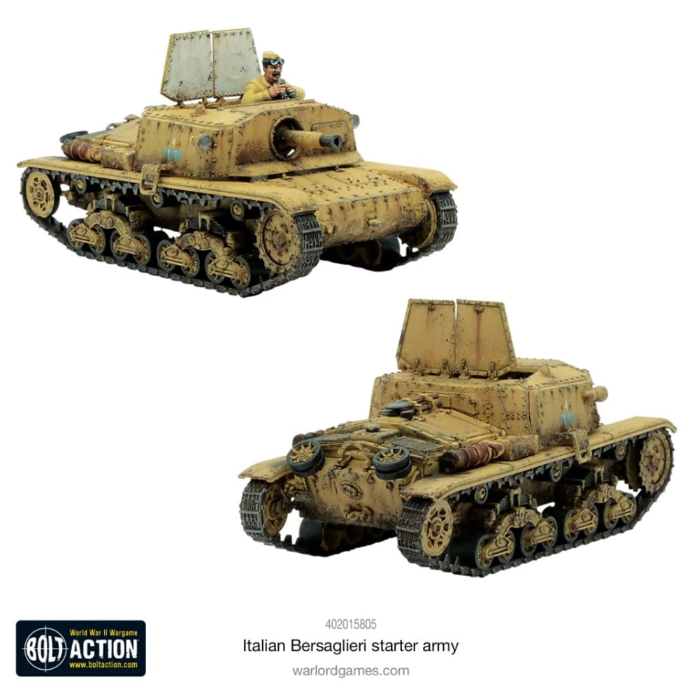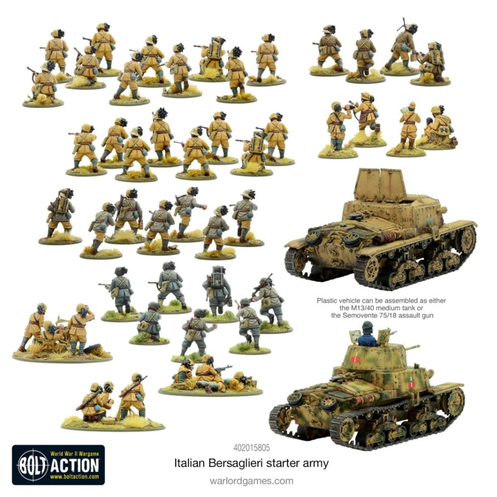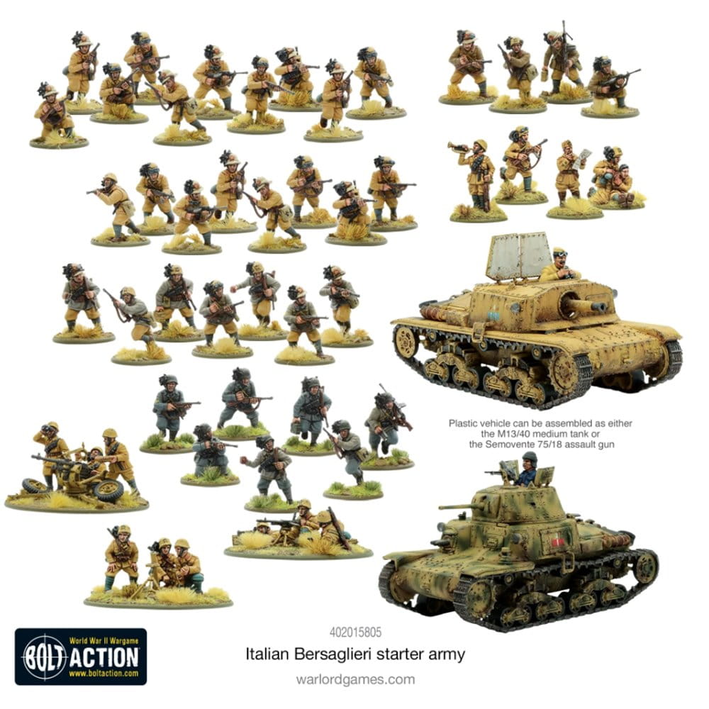 Wsparcie pancerne stanowi działo szturmowe Semovente 75/18 (które można alternatywnie zamontować jako czołg średni M13/40). Wszechstronna gama Bolt Action obejmuje dodatkowych żołnierzy i pojazdy, które możesz dodać do swojej armii, gdy będziesz gotowy na powiększenie swoich włoskich sił.