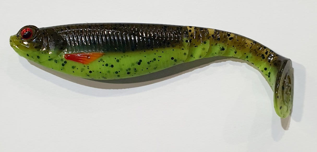 Przynęta ta posiada 5 dodatkowych nacięć w tylnej części, które zapewniają duży zakres pracy ogona, co przekłada się na jego żywą i intensywną pracę.