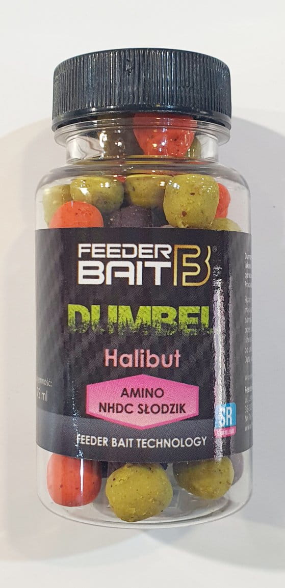 Technologia Feeder Bait SR - slow release informuje o powolnym uwalnianiu zawartych w dumbel aminokwasów oraz słodzika NHDC. Długim i żmudnym procesem okazało się osiągnięcie takiego połączenia ale było warto, gdyż podczas testów Dumbel Feeder Bait udowodnił wyższość nad innymi przynętami.