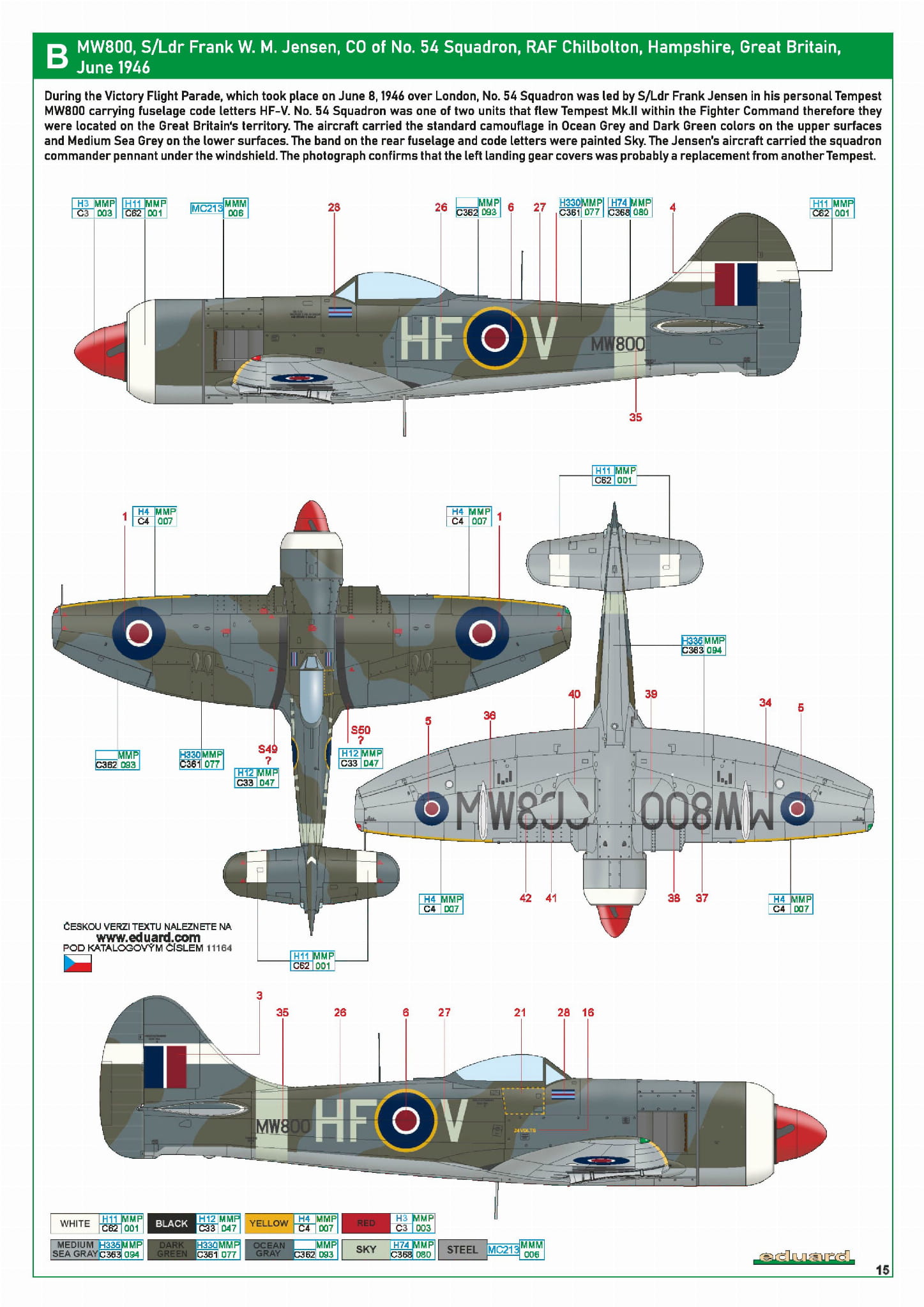 - The Ultimate Tempest 1/48 – MW800, S/Ldr Frank W. M. Jensen, dowódca 54. eskadry, RAF Chilbolton, Hampshire, Wielka Brytania, czerwiec 1946