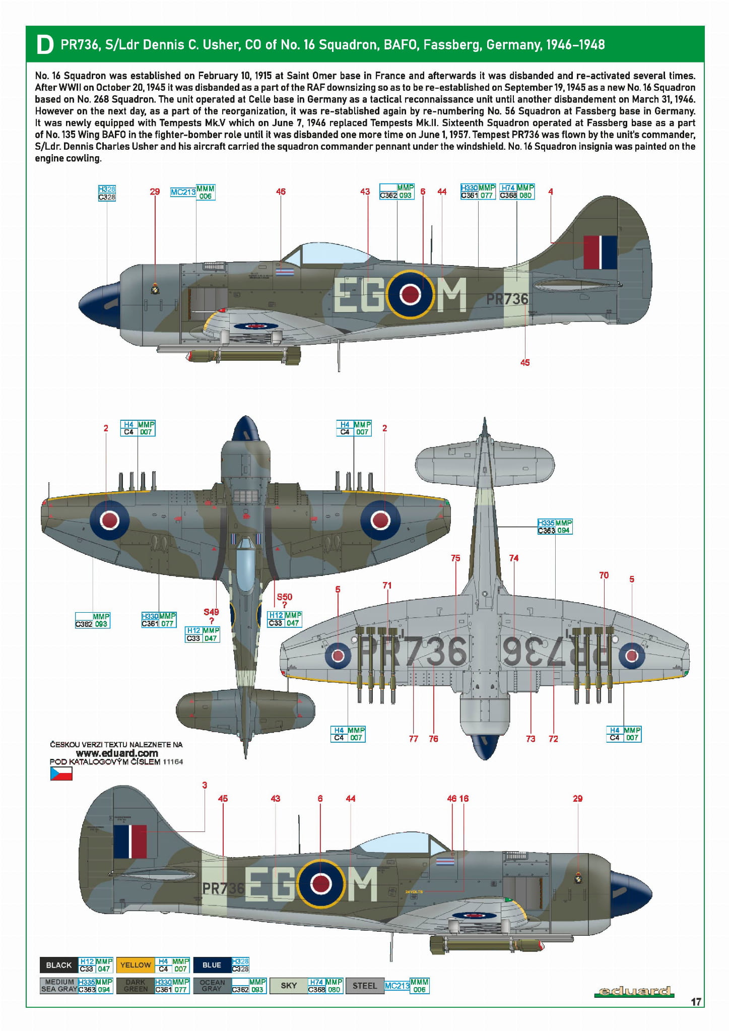 - The Ultimate Tempest 1/48 - PR736, S/Ldr Dennis C. Usher, dowódca 16 dywizjonu, BAFO, Fassberg, Niemcy, 1946-1948