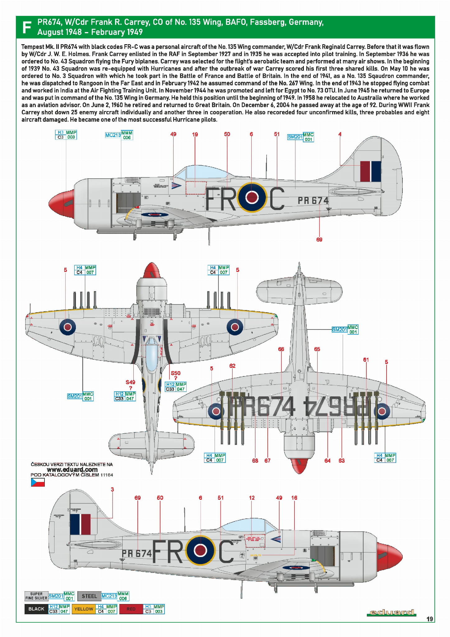 - The Ultimate Tempest 1/48 – PR674, W/Cdr Frank R. Carrey, dowódca 135 Wing, BAFO, Fassberg, Niemcy, sierpień 1948 – luty 1949