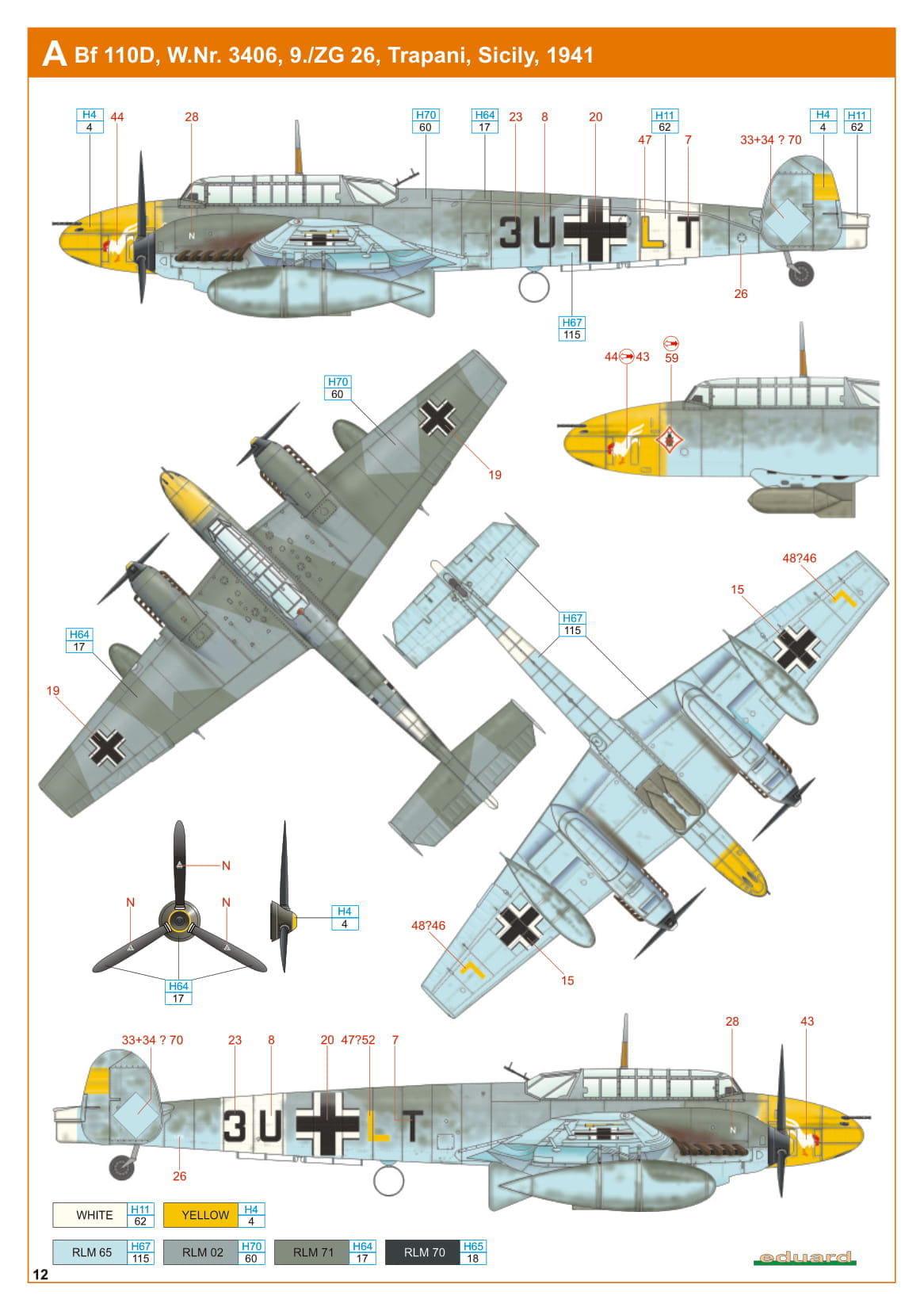 - Bf 110D, W.Nr. 3406, 9./ZG 26, Trapani, Sycylia, 1941