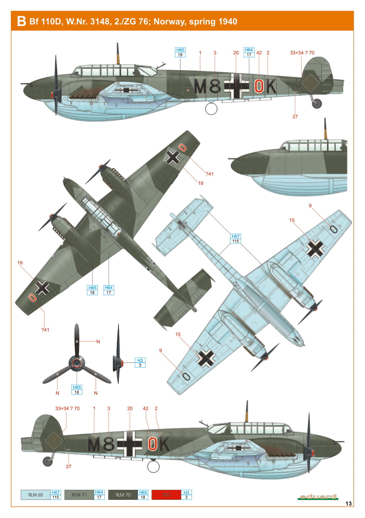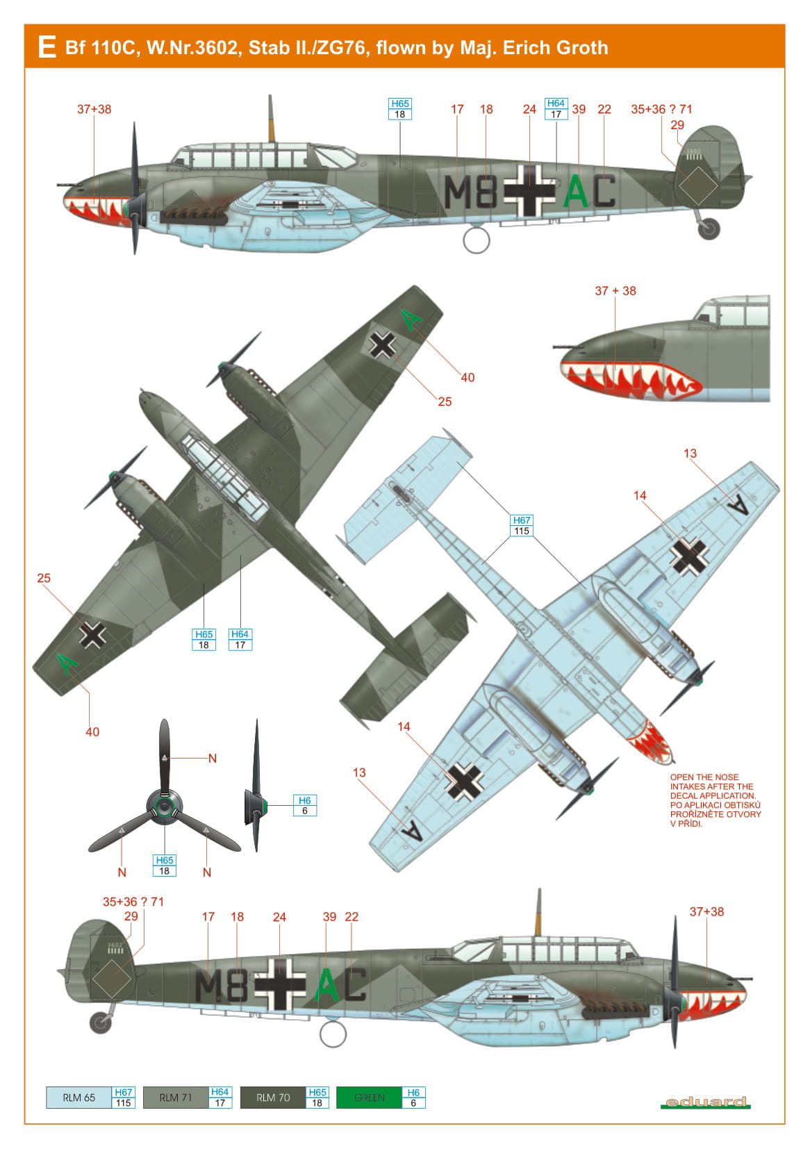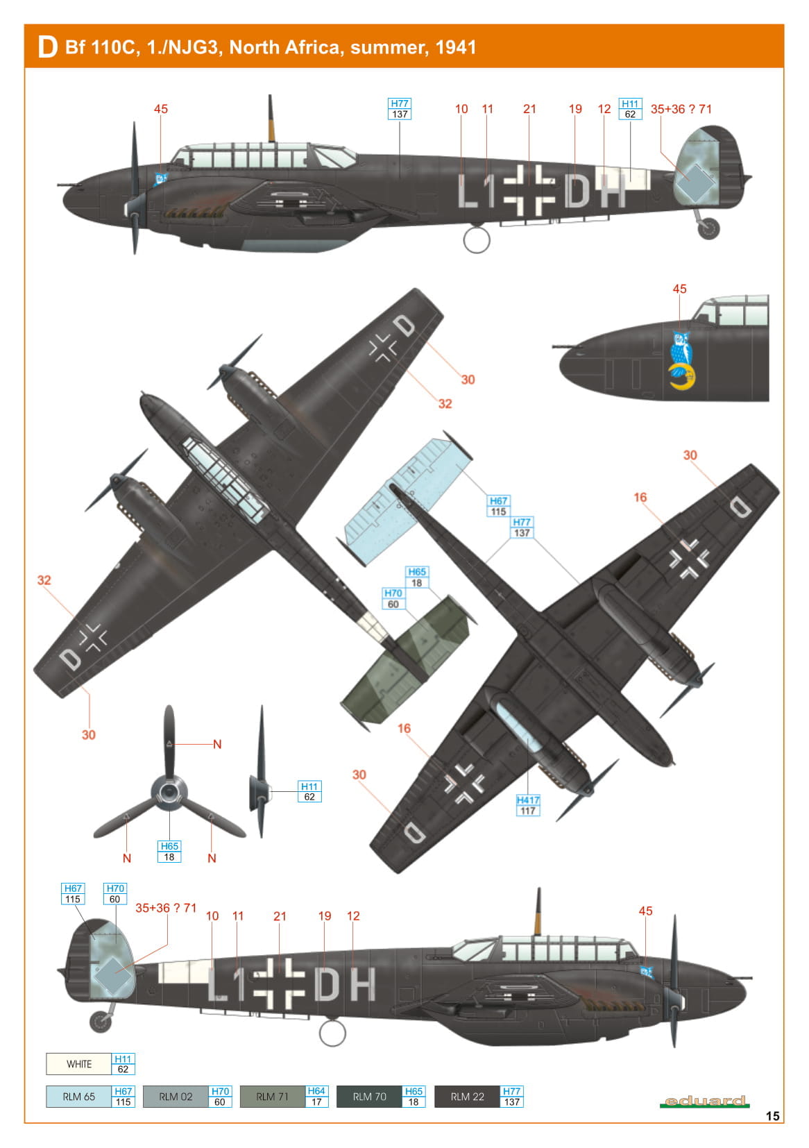 Bf 110C / D w 1/72 firmy Eduard to zupełnie nowy zestaw. Pięć atrakcyjnych oznaczeń obejmuje wersje C i D. Zestaw składa się z 8 plastikowych ramek, których komponenty zadowolą drobiazgowość i perfekcyjne spasowanie wszystkich plastikowych elementów.