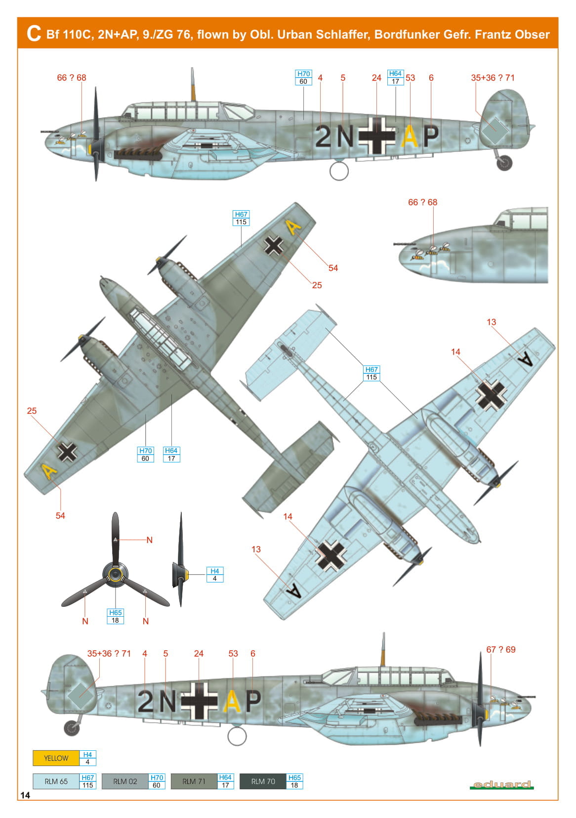- Bf 110C, 2N + AP, 9./ZG 76, pilot: Obl. Urban Schlaffer, Bordfunker Gefr. Frantz Obser