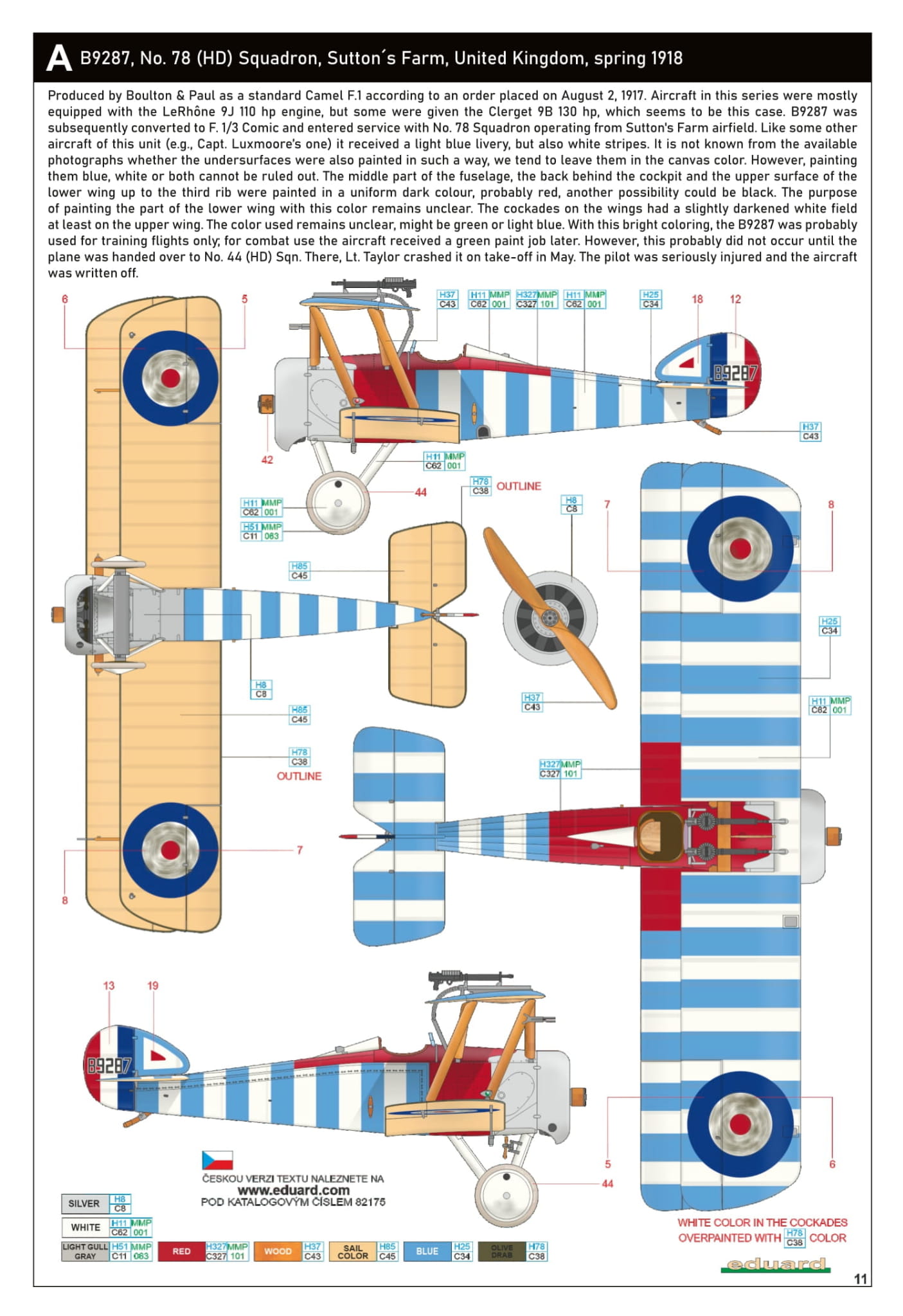 - Sopwith Camel Comic 1/48 - B9287, nr 78 (HD) Squadron, Sutton´s Farm, Wielka Brytania, wiosna 1918