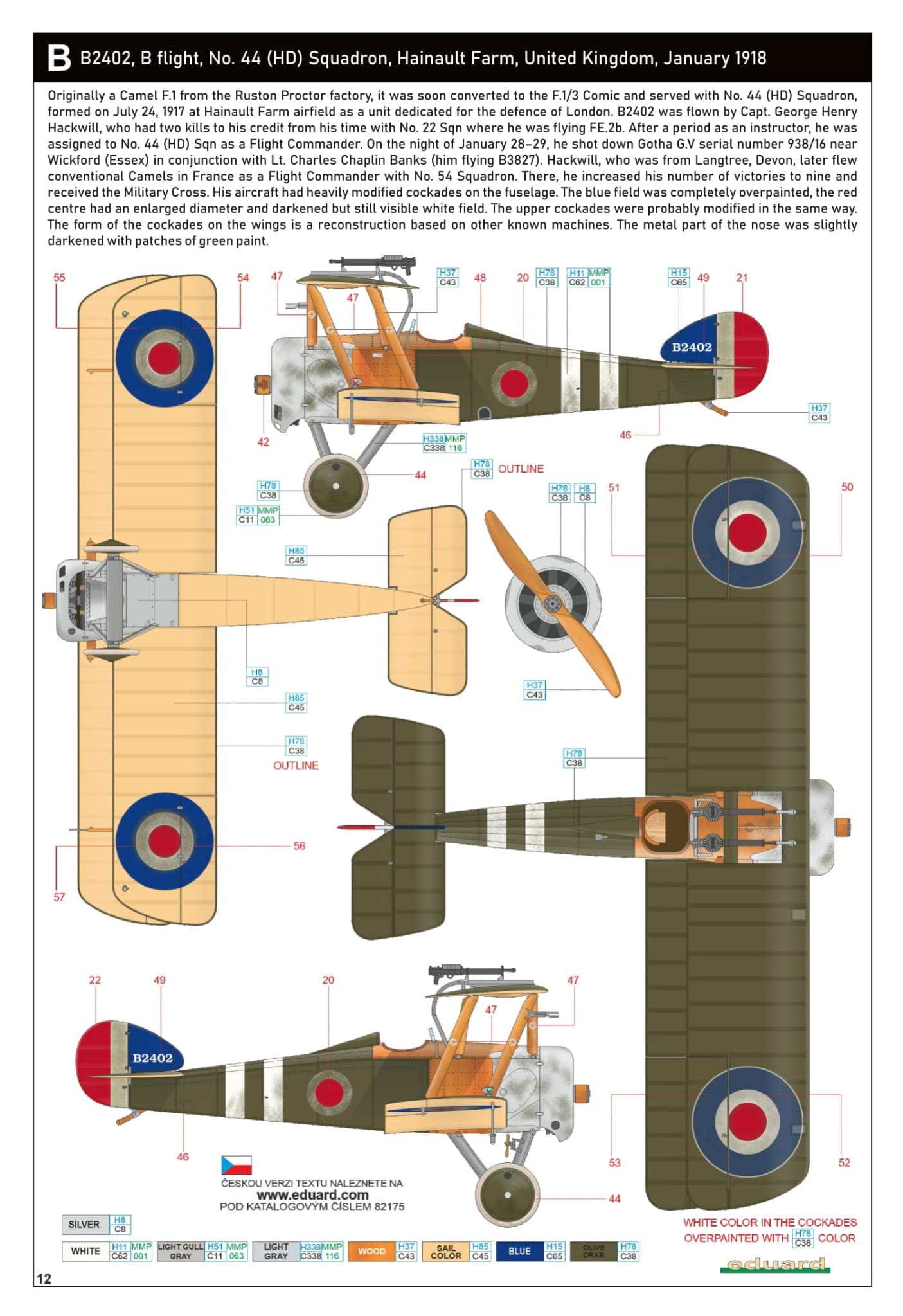 - Sopwith Camel Comic 1/48 - B2402 nr 44 (HD) Eskadra, lot B, Hainault Farm, Wielka Brytania, styczeń 1918