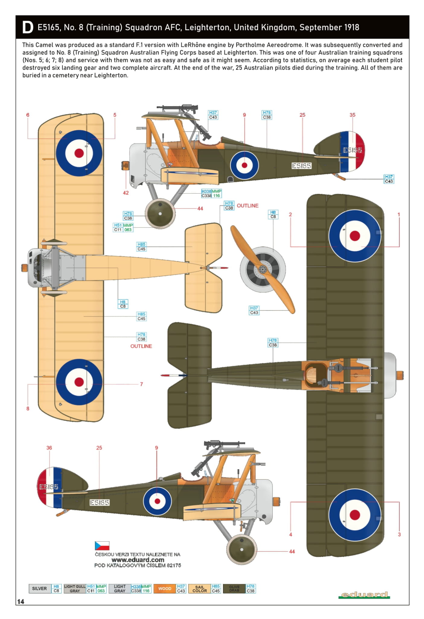 - Sopwith Camel Comic 1/48 - E5165 nr 8 (szkolenie) Squadron AFC, Leighterton, Wielka Brytania, wrzesień 1918