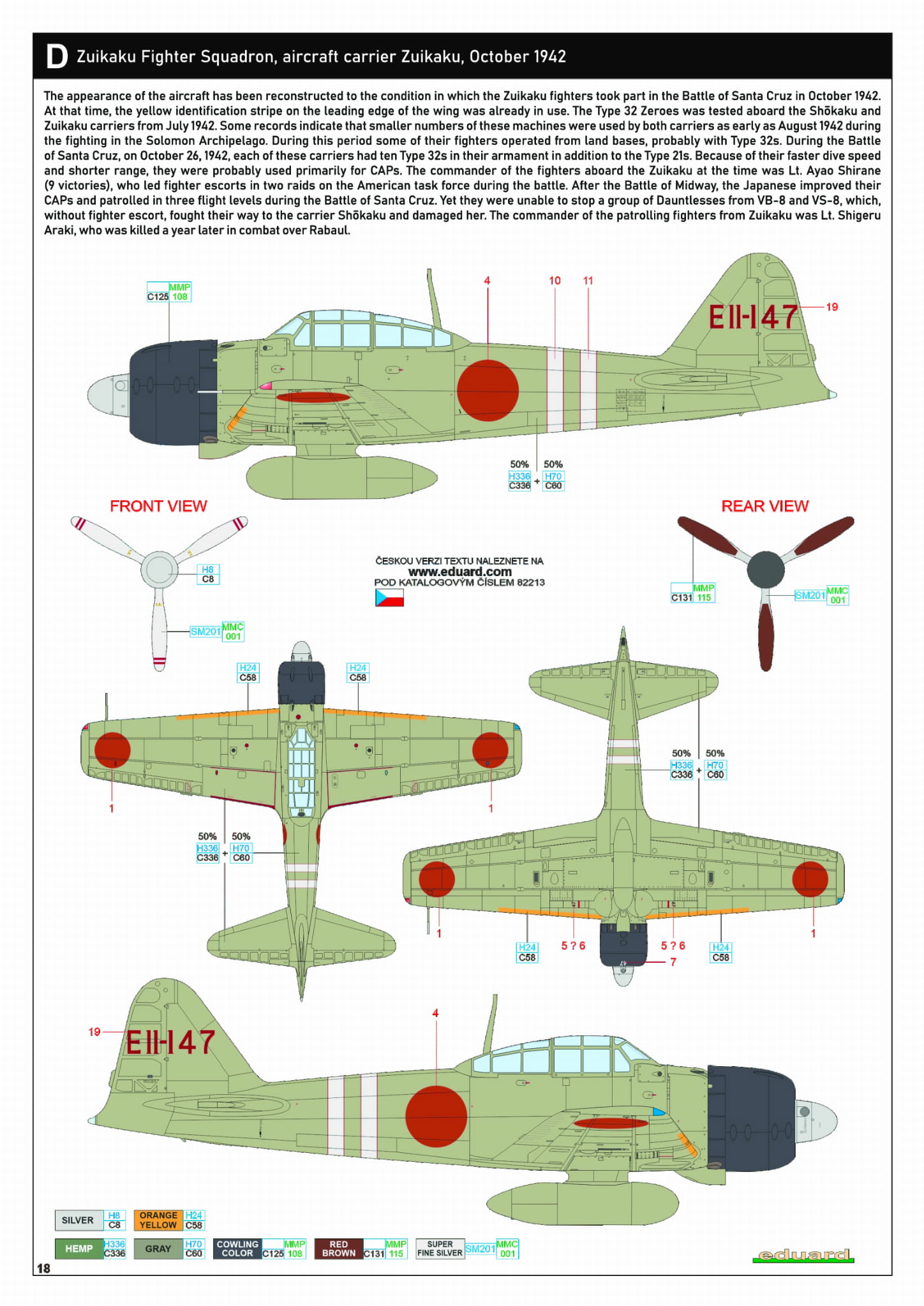 EDUARD 82213 1:48 A6M3 Zero Type 32 [PROFIPACK edition]