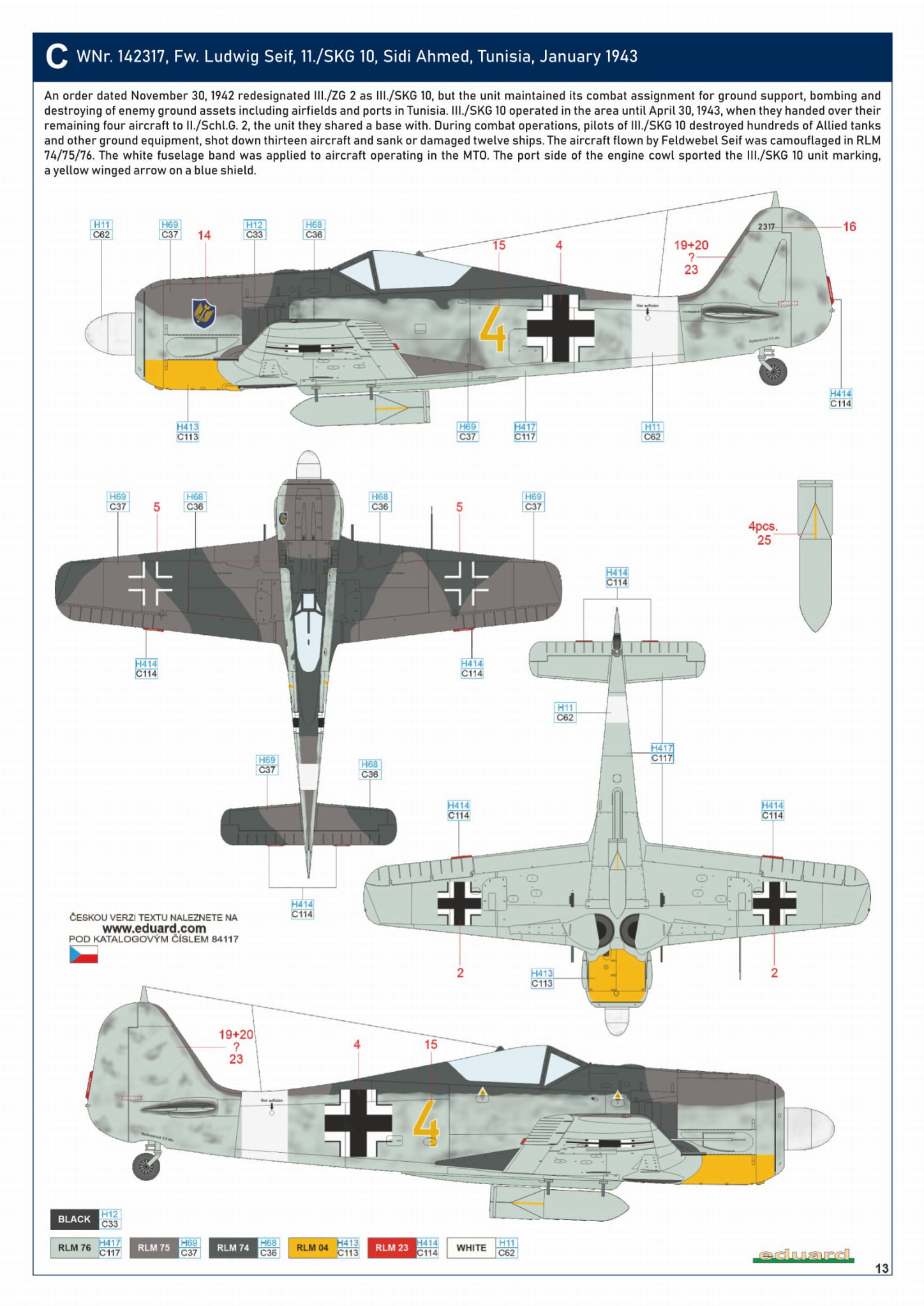 EDUARD 84117 1:48 Fw 190A-4 w/ engine flaps & 2-gun wings [WEEKEND edition]