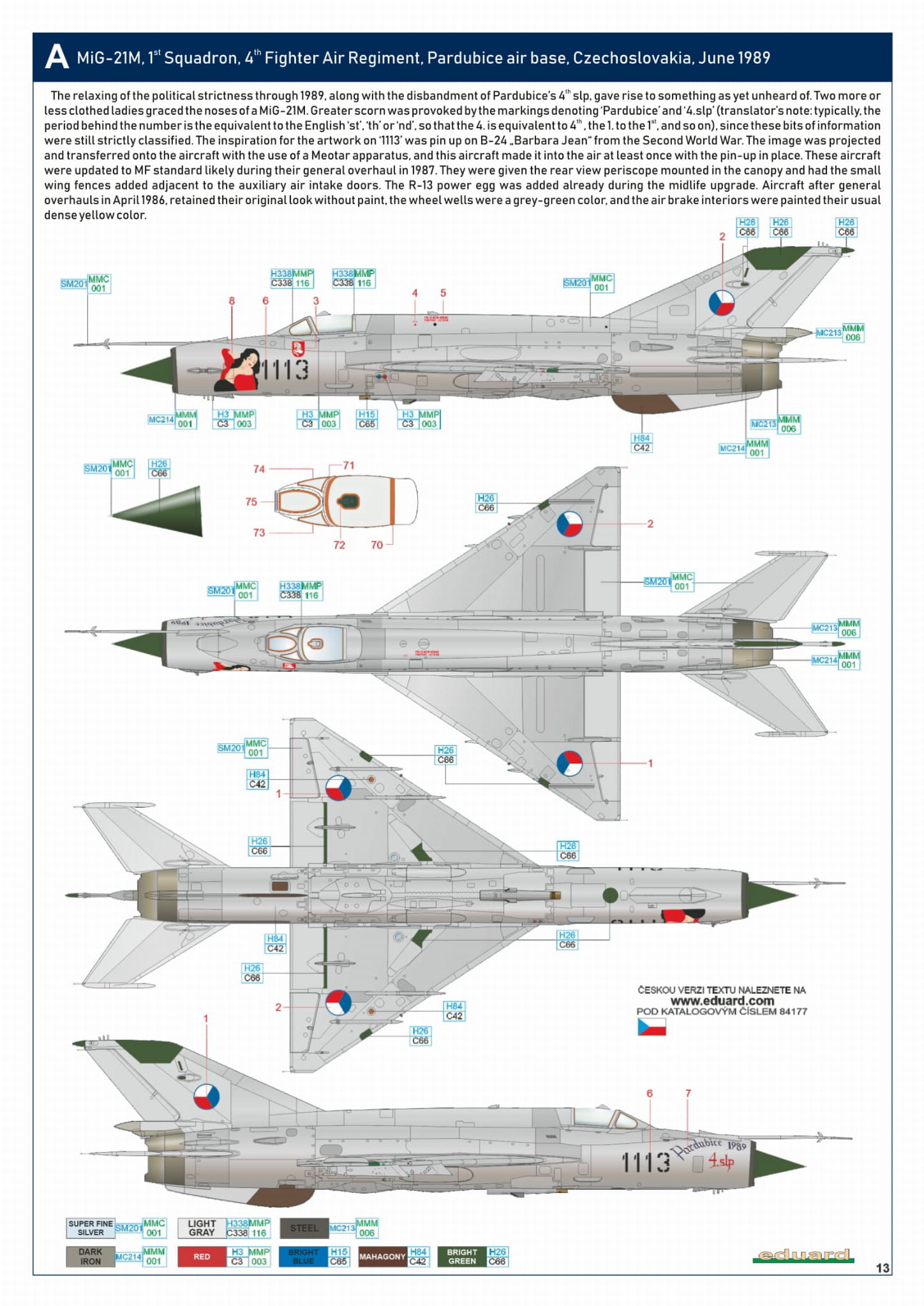 - MiG-21MF 1/48 - MiG-21M, 1 Eskadra, 4 Pułk Lotnictwa Myśliwskiego, baza lotnicza Pardubice, Czechosłowacja, czerwiec 1989