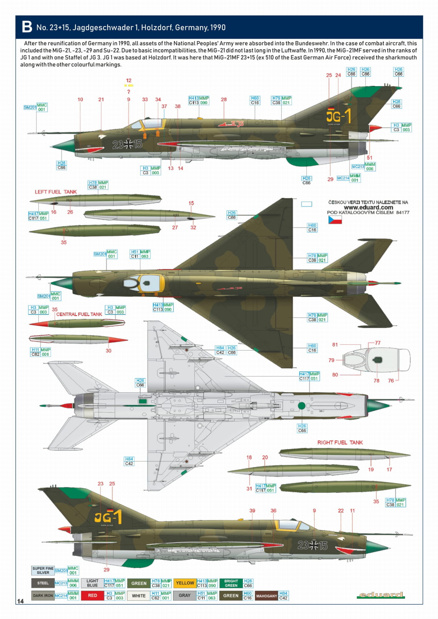 - MiG-21MF 1/48 - MiG-21MF, nr 23+15, Jagdgeschwader 1, Holzdorf, Niemcy, 1990