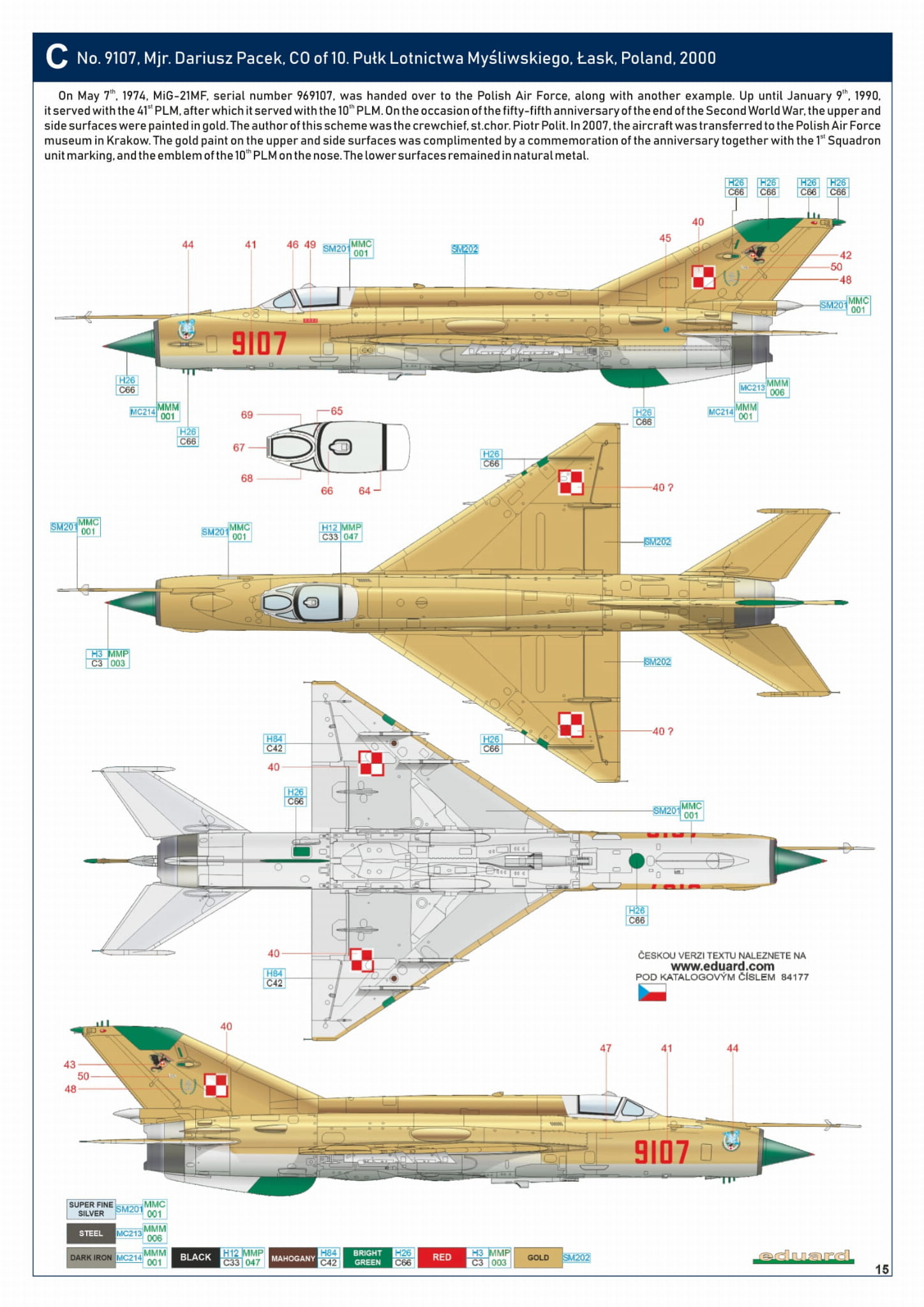 - MiG-21MF 1/48 - MiG-21MF, nr 9107, Mjr. Dariusz Pacek, CO z 10. Pułk Lotnictwa Myśliwskiego, Łask, 2000