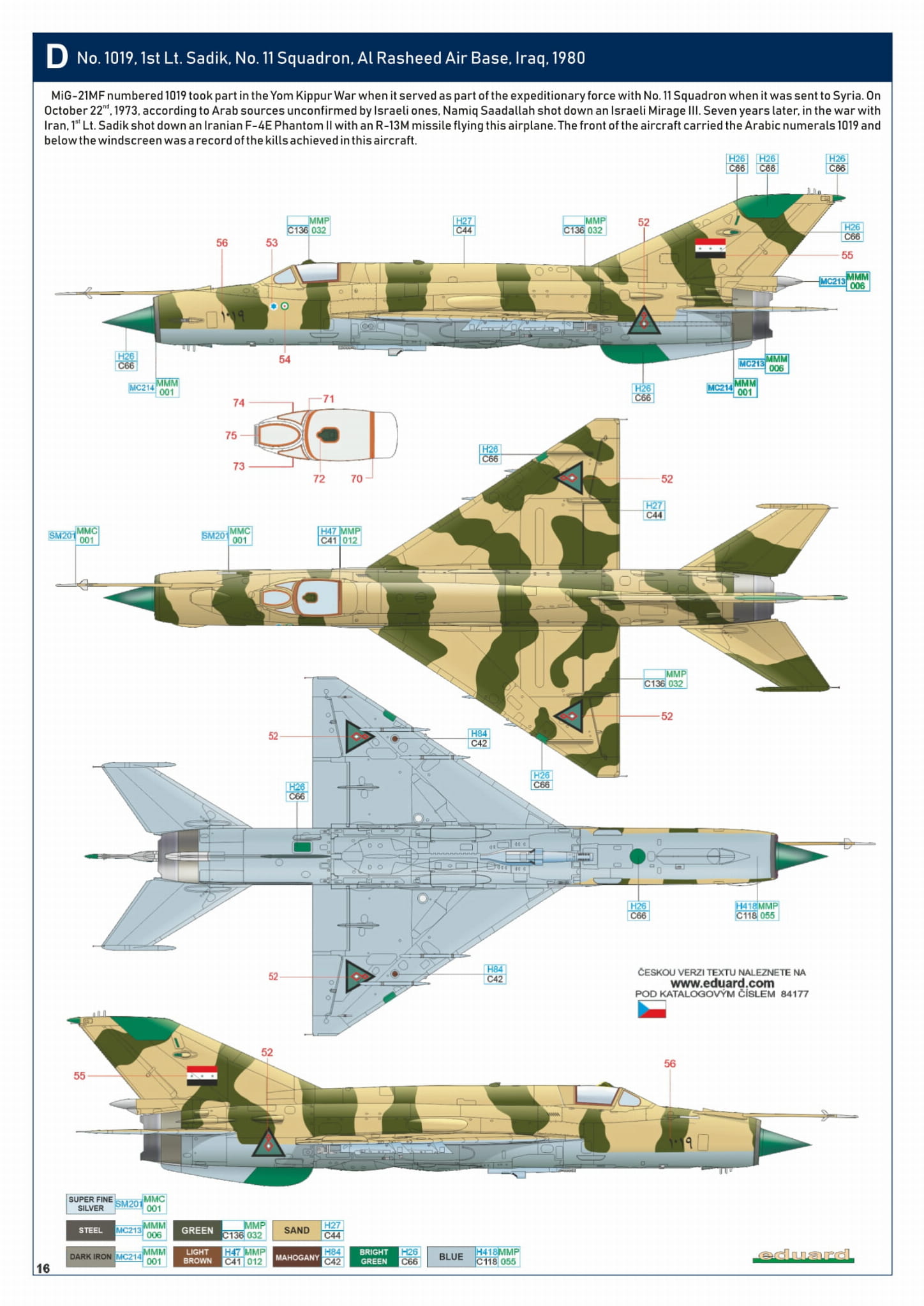 - MiG-21MF 1/48 - MiG-21MF, nr 1019, porucznik Sadik, 11 dywizjon, baza lotnicza Al Rasheed, Irak, 1980
