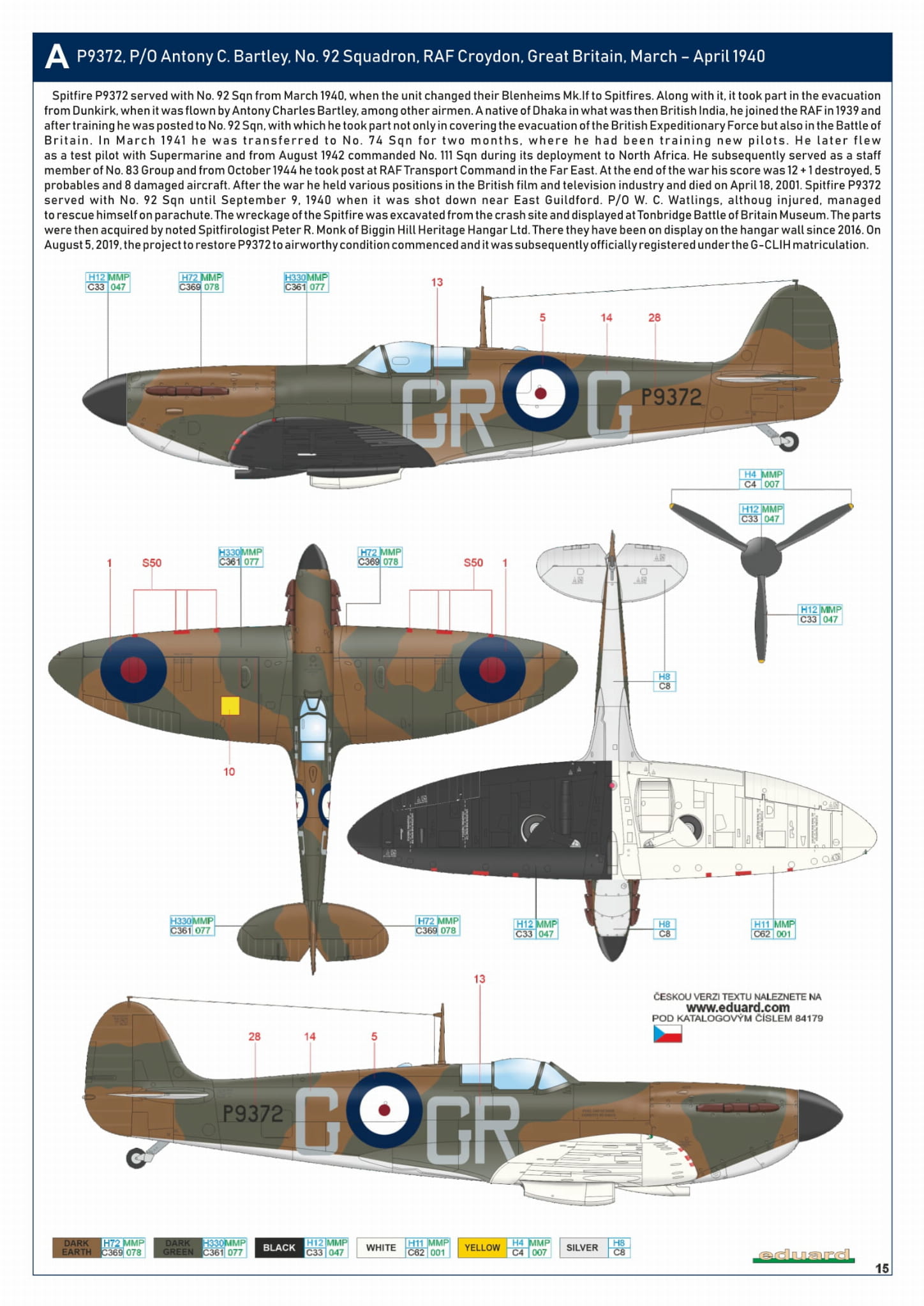 - Spitfire Mk. Ia 1/48 - P9372, P/O Antony C. Bartley, 92 Dywizjon, RAF Croydon, Wielka Brytania, marzec – kwiecień 1940