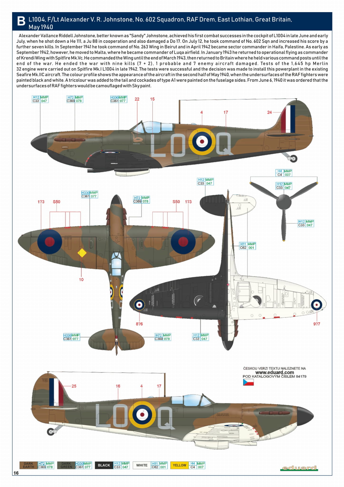 - Spitfire Mk. Ia 1/48 - L1004, F/Lt Alexander V. R. Johnstone, dywizjon 602, RAF Drem, East Lothian, Wielka Brytania, maj 1940