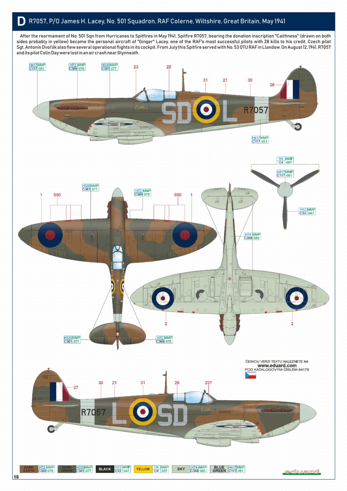 - Spitfire Mk. Ia 1/48 - R7057, P/O James H. Lacey, Dywizjon 501, RAF Colerne, Wiltshire, Wielka Brytania, maj 1941