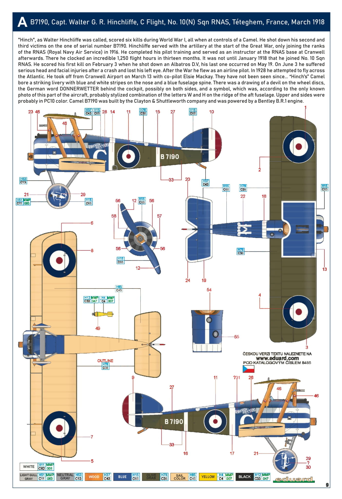 - Sopwith F.1 Camel (Bentley) 1/48 - B7190, kpt. Walter G. R. Hinchliffe, C Lot, nr. 10(N) Sqn RNAS, Téteghem, Francja, marzec 1918