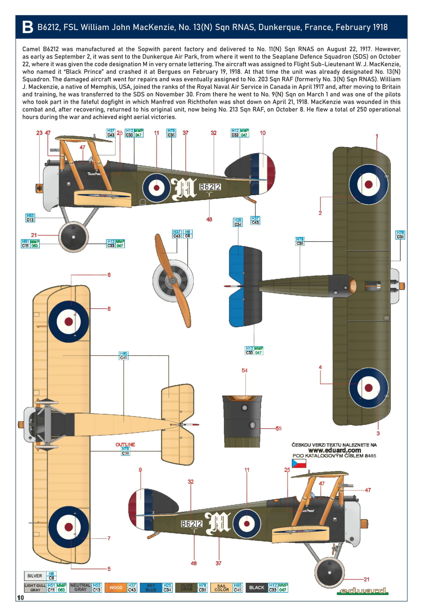 - Sopwith F.1 Camel (Bentley) 1/48 - B6212, William John MacKenzie, nr. 13(N) Sqn RNAS, Dunkierka, Francja, luty 1918