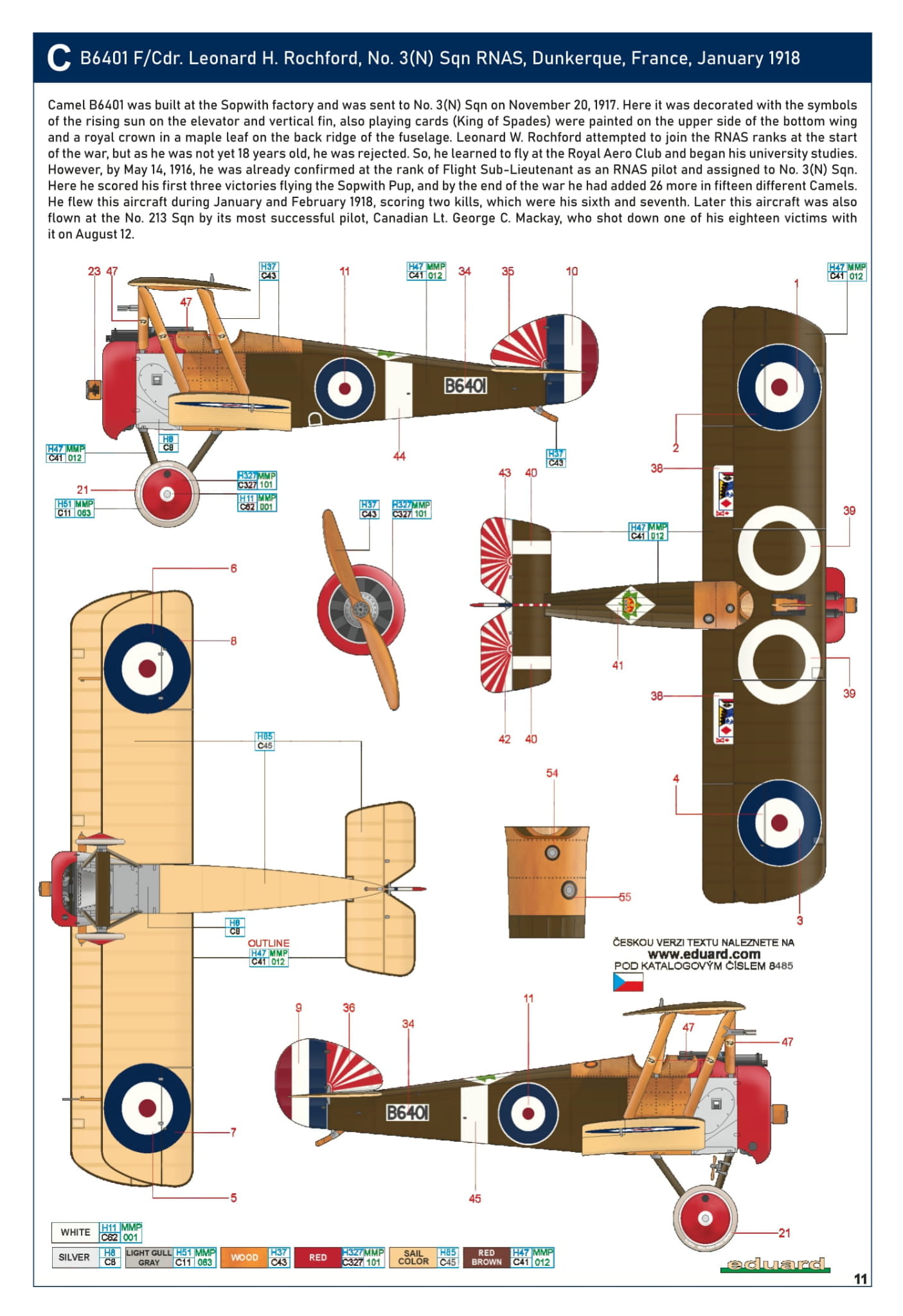 - Sopwith F.1 Camel (Bentley) 1/48 - B6401 F/Cdr. Leonarda H. Rochforda, nr. 3(N) Sqn RNAS, Dunkierka, Francja, styczeń 1918