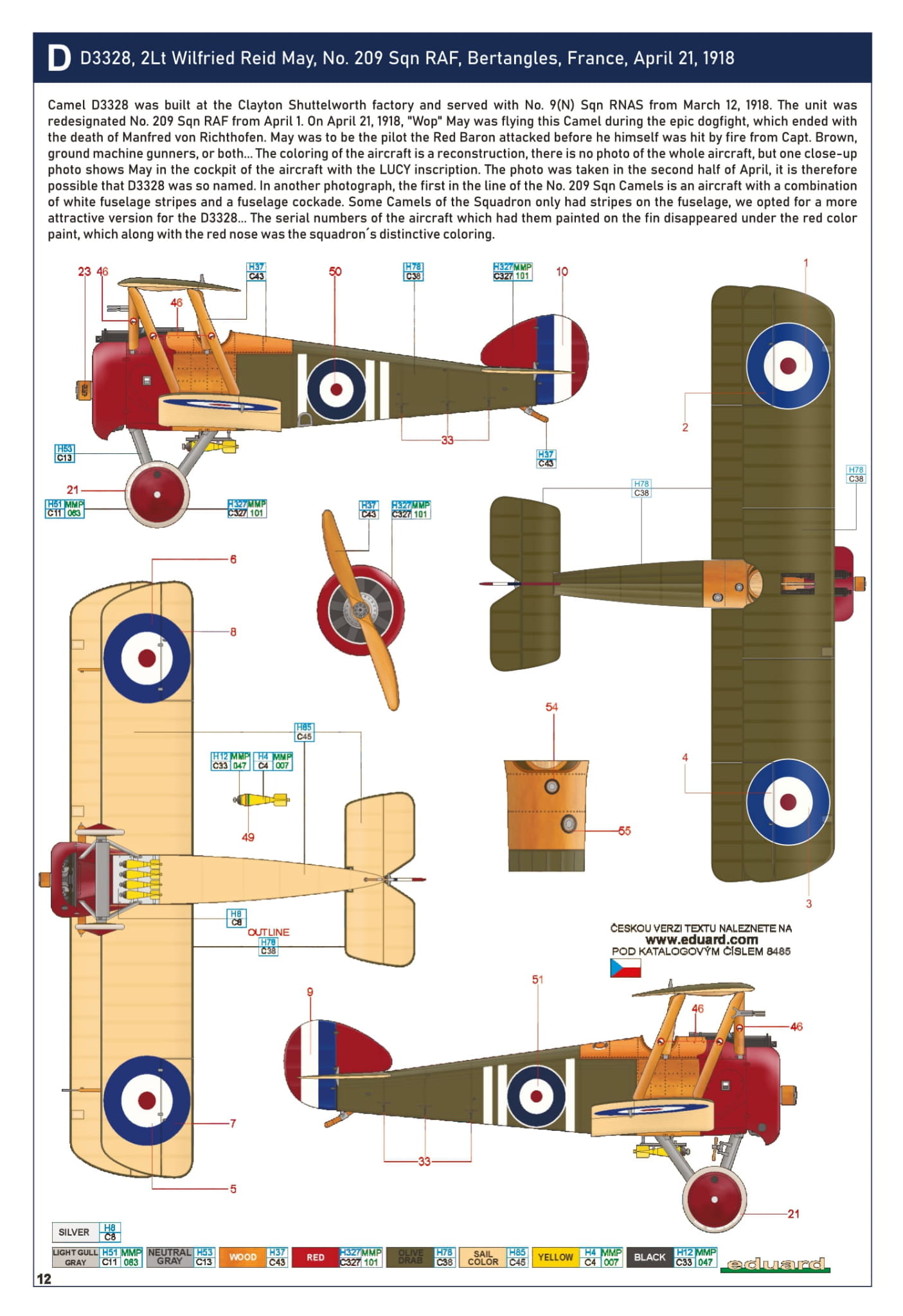 - Sopwith F.1 Camel (Bentley) 1/48 - D3328, 2L Wilfried Reid May, nr. 209 Dywizjon RAF, Bertangles, Francja, 21 kwietnia 1918