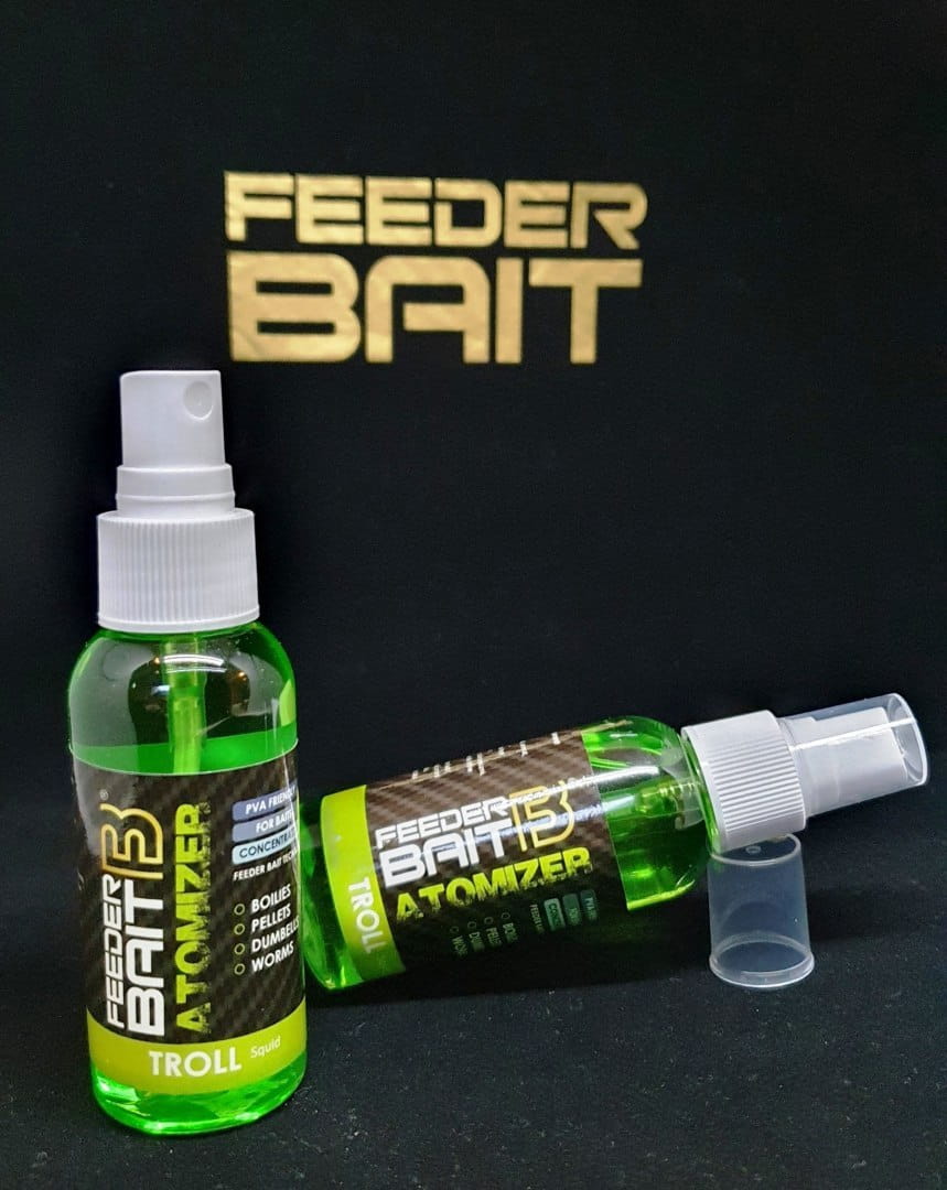 Atomizery dedykowane są pod sportowe łowienie w celu szybkiego podniesienia jakości używanych przynęt: kulek, peletów, robaków, ziaren oraz sztucznych przynęt. Zastosowanie cząstek charakterystycznych dla wabienia ryb między innymi rozpuszczalnych białek mlecznych sprawiło, że Atomizer Feeder Bait to niezwykle skuteczny atraktor. Skuteczność Atomizera jest spotęgowana dzięki słodzikowi NHDC, który jest 1800 razy słodszy od cukru i dobrze się rozpuszcza w wodzie o niskiej temperaturze. Łatwość w użyciu pozwala na zastosowanie w dowolnym momencie podczas łowienia. Nie rozpuszcza PVA.