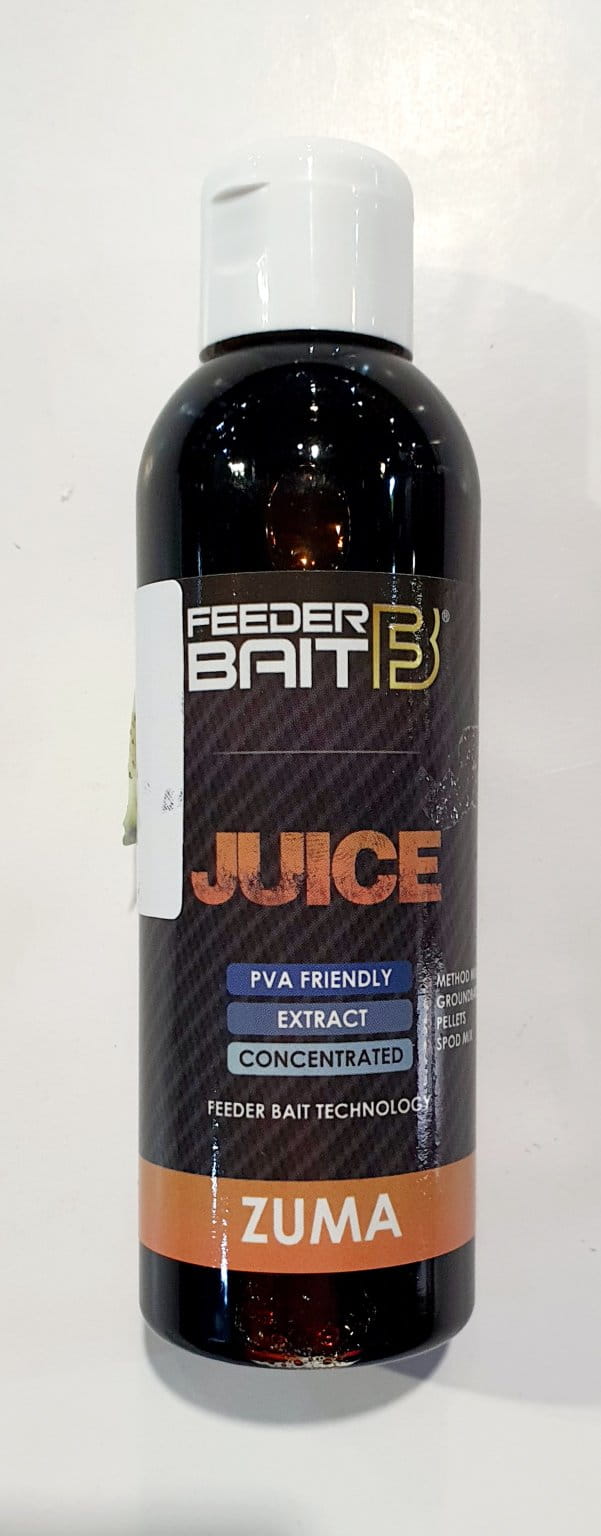 Juice Feeder Bait to niezwykle gęste zalewy służące do podniesienia walorów smakowych i zapachowych stosowanych zanęt, mixów, pelletów, ziaren. Najlepsze efekty ich zastosowania możemy zauważyć podczas nęcenia w okresie letnim oraz na łowiskach o znacznym zamuleniu i gęstej roślinności przydennej czyli zawsze wtedy kiedy musimy przebić się z aromatem przez specyficzny zapach panujący w wodzie. Juice Feeder Bait występują w sześciu smakach i w większości przypadków są to aromaty łączone tak aby osiągnąć efekt podwójnego wabienia.