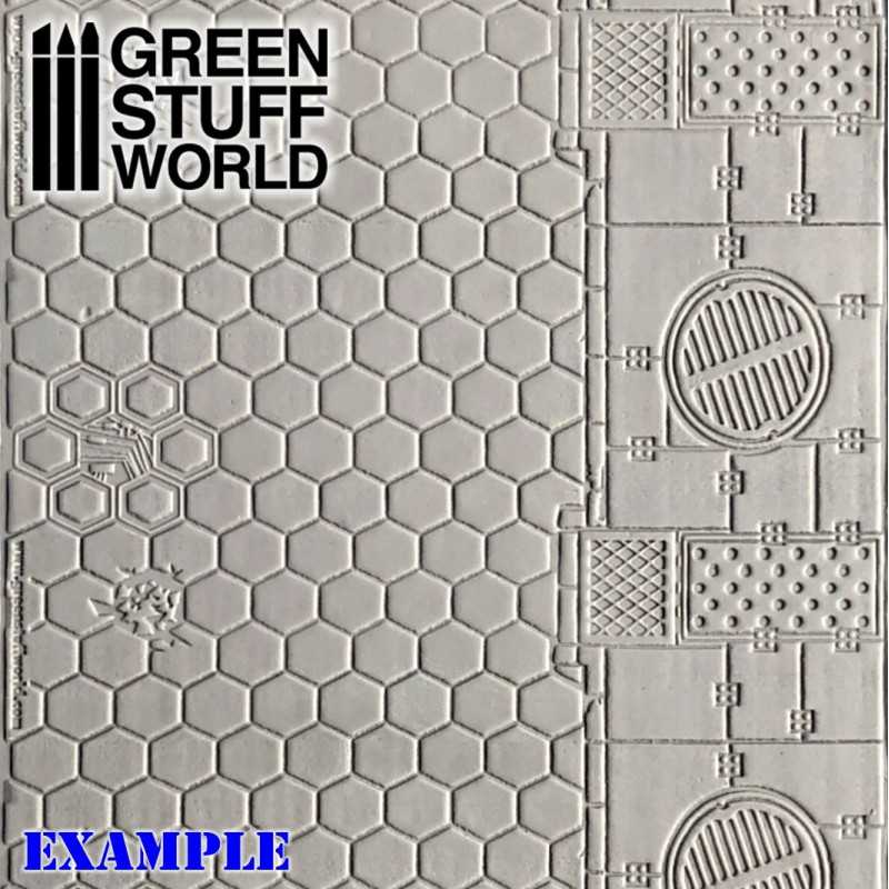 - W przypadku szpachlówki Green Stuff, która jest szczególnie lepka, przed nałożeniem tekstury należy lekko zwilżyć szpachlówkę lub wałek niewielką ilością wody. Możesz również zmniejszyć lepkość, nakładając talk lub używając wazeliny Sculptor Vaseline.
