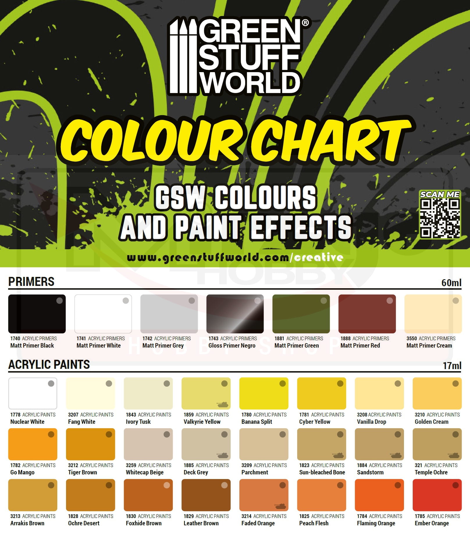 Dzięki pełnemu spektrum podstawowych tonów i odcieni niezbędnych w grach wojennych, pojazdach, miniaturach i dioramach, a także unikalnym kolorom dostępnym wyłącznie dla GSW, ta seria ma na celu zapewnienie wszystkiego, czego hobbysta potrzebuje do swoich projektów.
