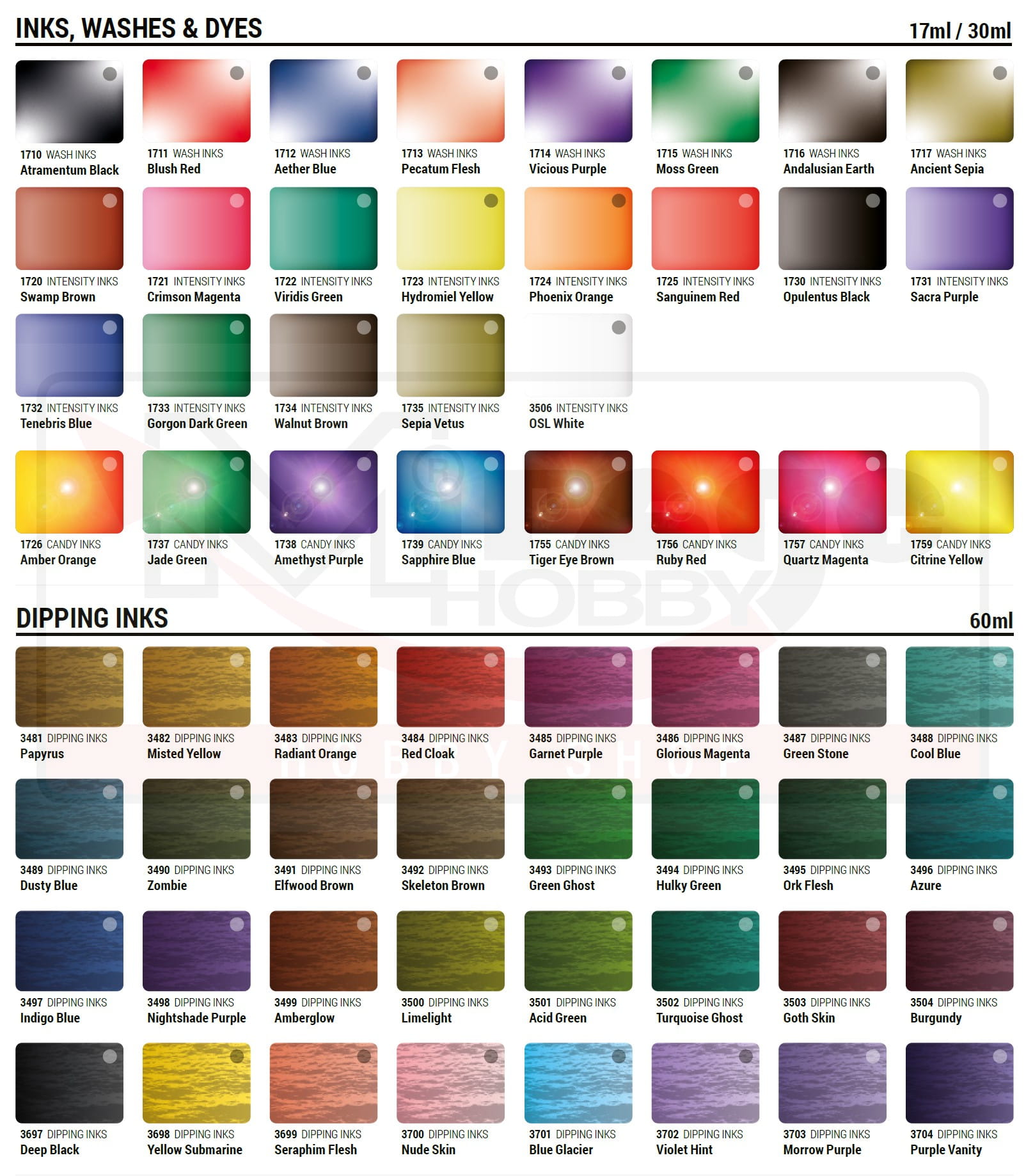 Używaj ich jako farby bazowej do rozpoczęcia projektów lub w miejscach, gdzie wymagane jest mocne krycie. Uzupełnij je innymi farbami modelarskimi lub tuszami, aby dodać nasycenia i intensywności koloru. Można je rozcieńczać wodą lub rozcieńczalnikiem do akrylu, aby móc ich używać z aerografem.