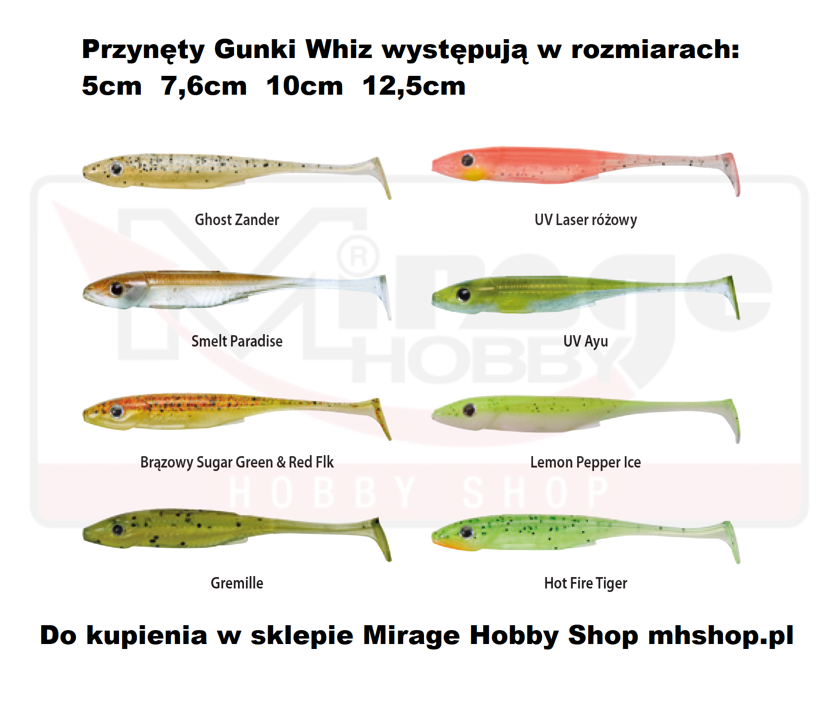 Gumy Gunki Whiz to świetne, wszechstronne przynęty do finezyjnych technik łowienia na wodach o dużej presji wędkarskiej, na których brania są niepewne, a ryby koncentrują się na zjadaniu narybku.