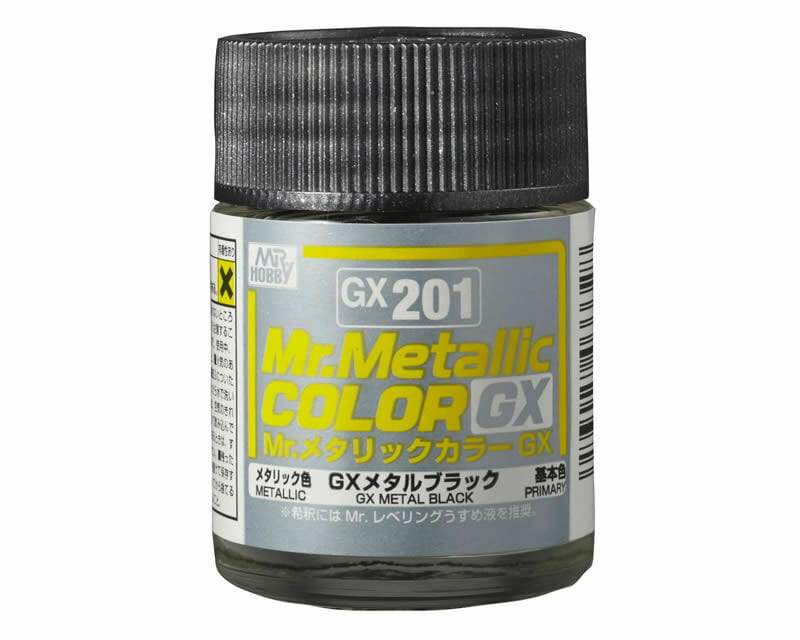Mr. METALLIC COLOR GX to seria farb metalicznych o podwyższonej jakości bestsellerowego Mr. COLOR. Charakteryzuje się żywszymi kolorami, doskonałą siłą krycia koloru bazowego oraz gładszą i mocniejszą powłoką. Udało się wyprodukować tę wysokiej jakości farbę bez użycia toluenu.