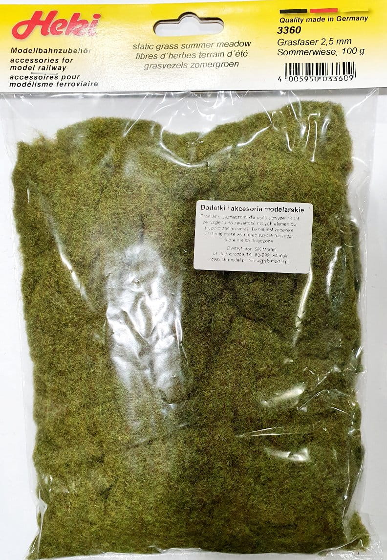 Opakowanie zawiera 100 gram trawy statycznej wyprodukowanej przez firmę HEKI.