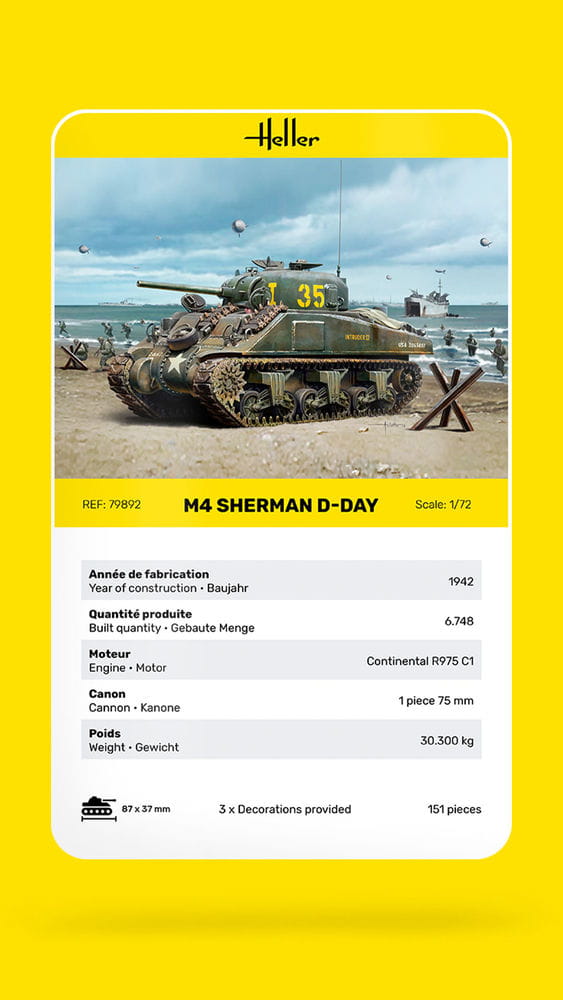 HELLER 79892 1:72 M4 SHERMAN "D-DAY"