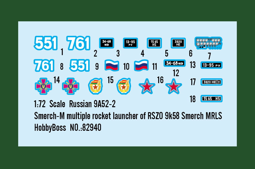 HOBBY BOSS 82940 1:72 Russian 9A52-2 Smerch-M Multiple Rocket Launcher Of RSZO 9k58 Smerch MRLS