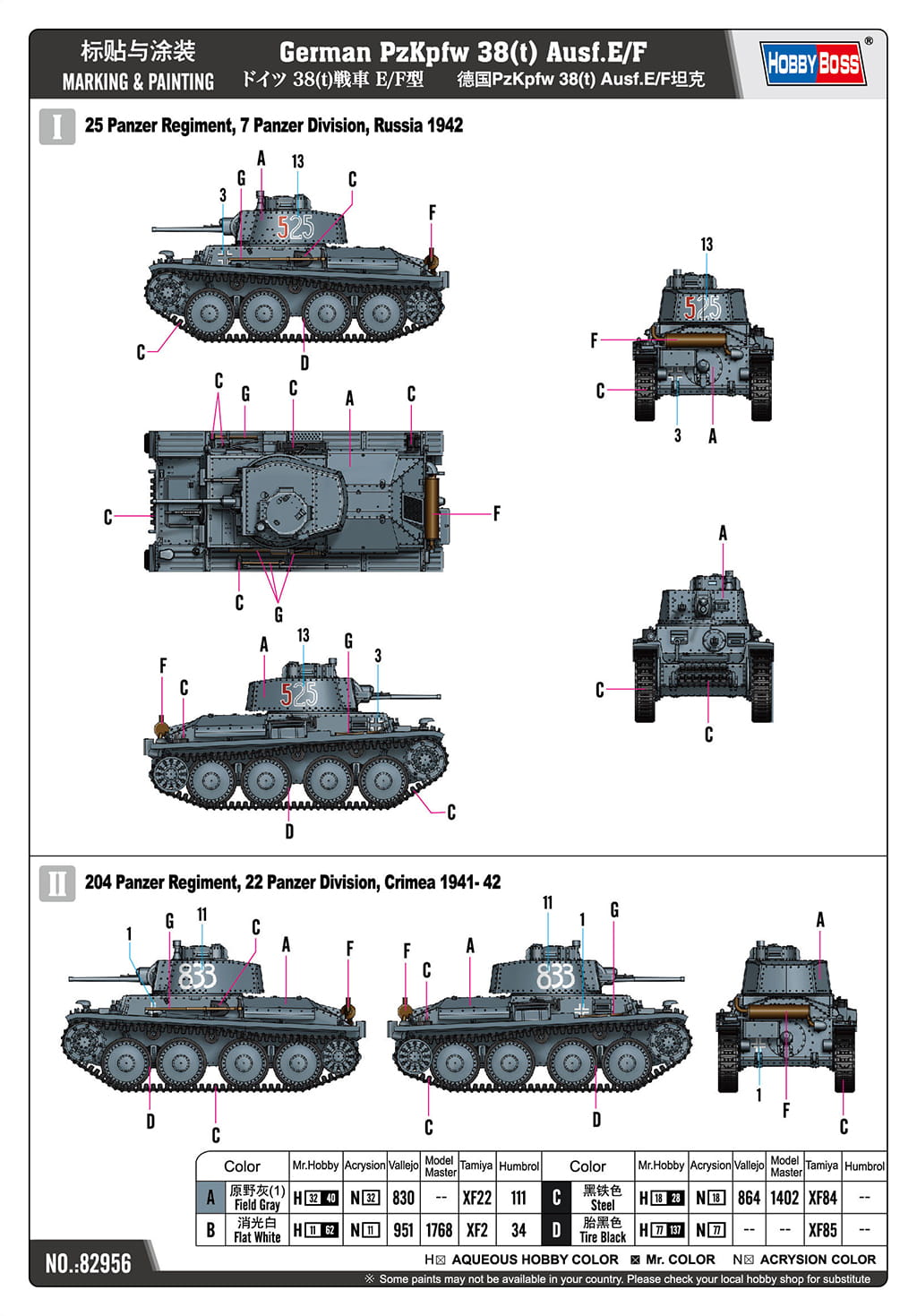 HOBBY BOSS 82956 1:72 German Pz.Kpfw. 38(t) Ausf.E/F