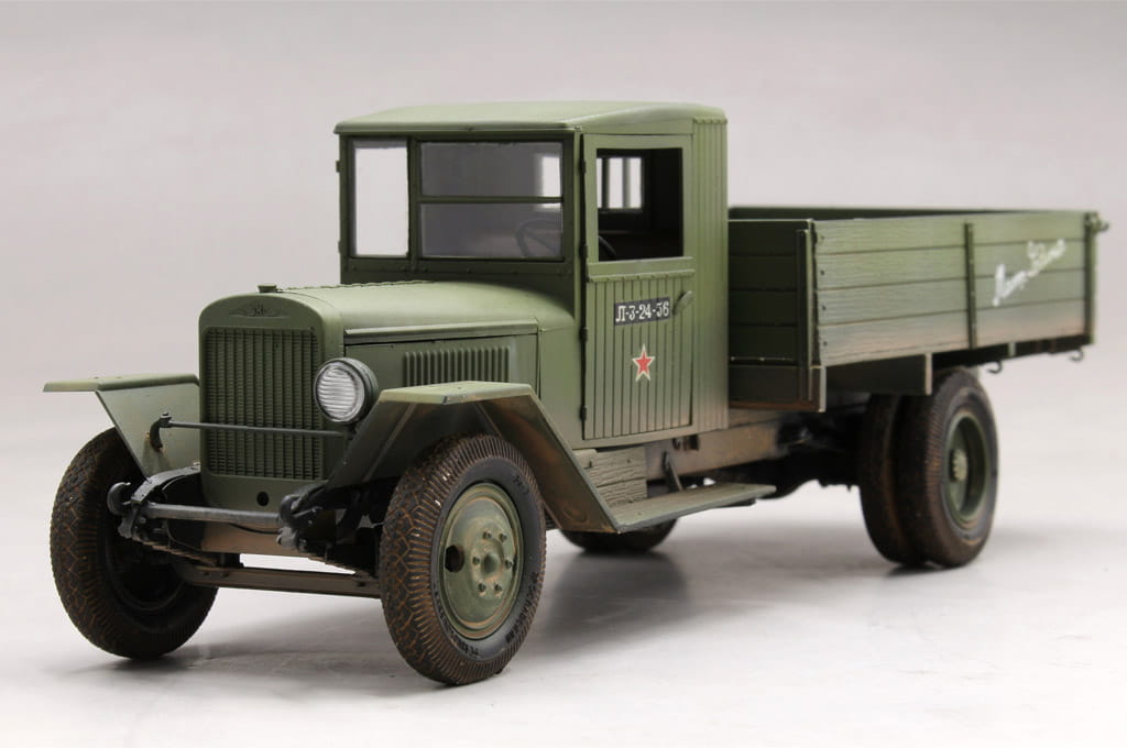 The ZIS-5 was a 4x2 Soviet truck produced by MoscowZIS factory from October 1933 on.ZIS-5 became an excellent vehicle, the engine could work even with the worst fuel, and the car mechanisms were simple, durable and insensible on brutal service. The car could cope with Russian unbitten trucks. ZIS was produced in different versions. Based on ZIS chassis were available ambulances, tanks, cranes and lots of different vehicles. During the World War II the simplified version of ZIS was produced named ZIS-5V. ZIS-5 was fundamental vehicle for the Red Army.