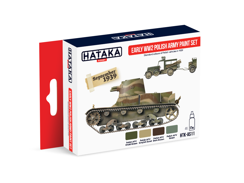 Zestaw zawiera farby akrylowe wyprodukowane przez firmę Hataka przeznaczone do malowania modeli polskich pojazdów pancernych pochodzących z okresu II Wojny Światowej (1939 - 1945).