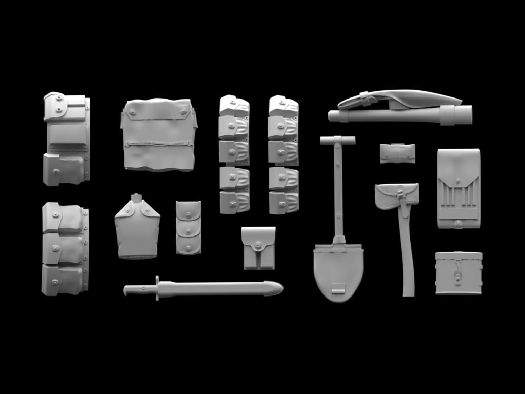 Zestaw zawiera 208 części do montażu broni i wyposażenia piechoty amerykańskiej z I wojny światowej.