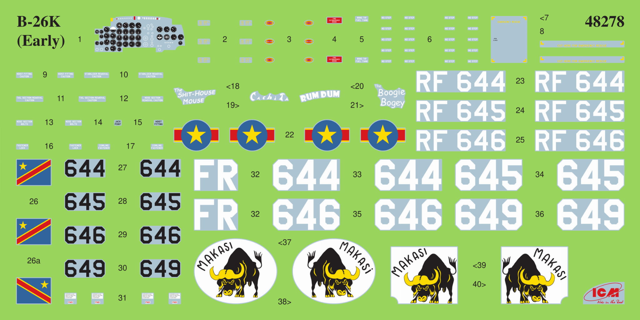 Na początku 1965 roku niektóre samoloty B-26K otrzymały oryginalne oznaczenia, które były używane jako znak identyfikacyjny eskadry. Była dużym czarnym bykiem na białym tle, skopiowanym z etykiety popularnej lokalnej marki piwa i imienia Makasi. Nazwa została przetłumaczona jako „bardzo silny” lub „silny jak byk”.