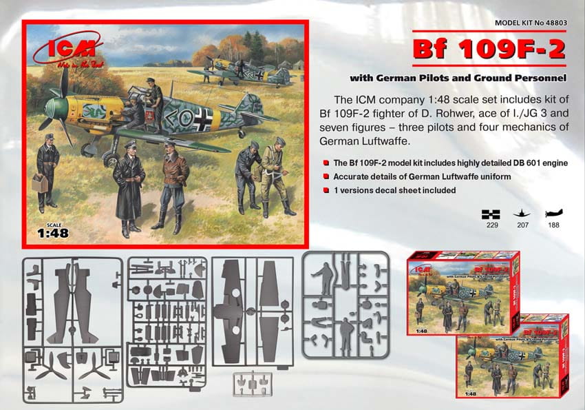 ICM 48803 1:48 German IIWW Fighter Messerschmitt Bf 109 F-2 with German Pilots