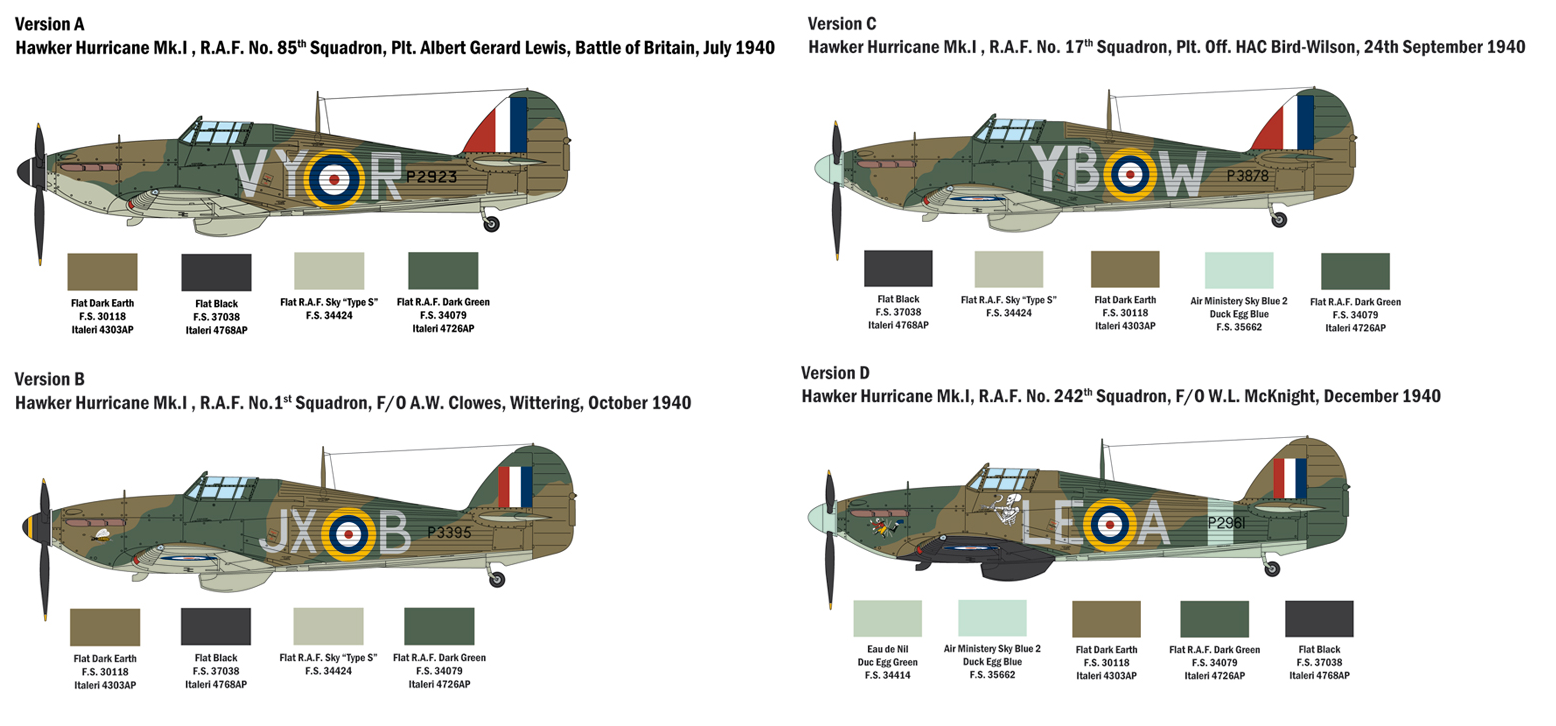The Hawker Hurricane has been the most widely used fighter by the British Royal Air Force at the beginning of World War II. The Hurricane was powered by a Rolls-Royce Merlin 12-cylinders, liquid-cooled, with more than 1,000 HP that could lead to a speed above 500 km/h. The eight 7.7 mm Browning machine guns, which equipped it , guaranteed a good firepower. Although it was slower and more antiquated, for aerodynamic design, then the famous "colleague" with whom it shared the operational engagement during the Battle of Britain, however, was more robust, cheaper and easier to maintain and repair. He has contributed significantly to the victory of the RAF during the Battle of Britain, but during the war, it has gradually given the role of front-line fighter to the more modern Spitfire.