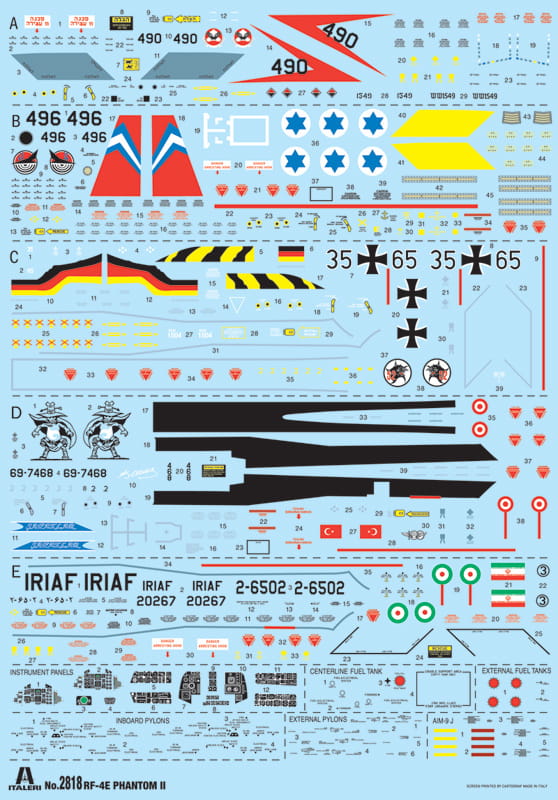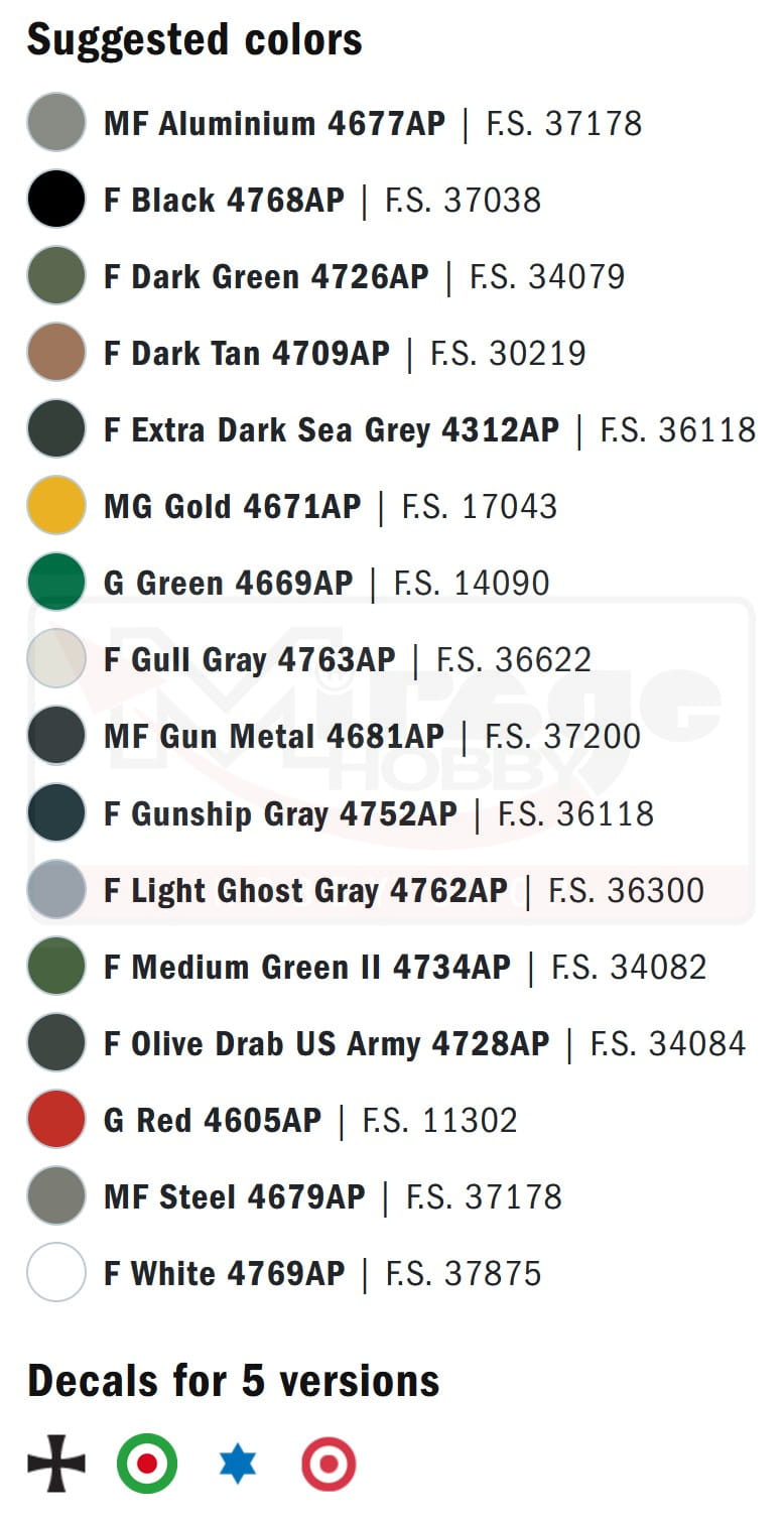 SUPER DECALS SHEET FOR 5 VERSIONS - COLOR INSTRUCTION SHEET