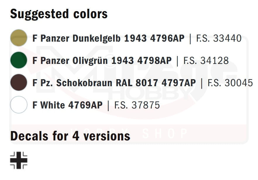 The Tiger I tank, which has been produced in the second half of 1943, was based on the hull of the firstoperational version used in North Africa and Russia. At the beginning this tank had wheels with rubber rim,which will be replaced in the following productions starting from February 1944, but it was equipped withthe new turret with increased protection and better cupola for the commander. Besides some of thesevehicles maintained the characteristic system of dust filters Feifel, and the smoke grenade launchers. On thetanks produced since August 1943 was also applied a magnetic mine paste that will become standard on alltanks of the German Army.